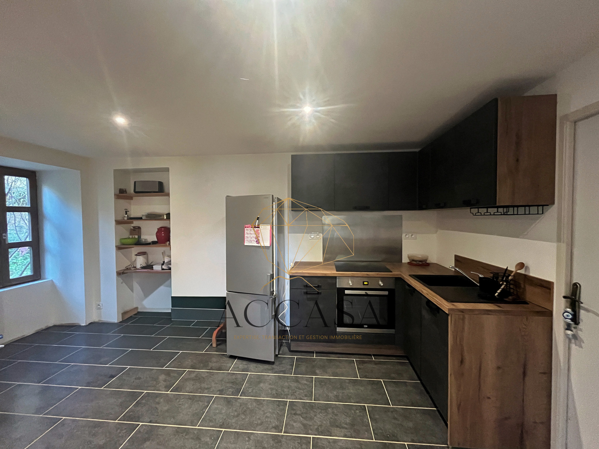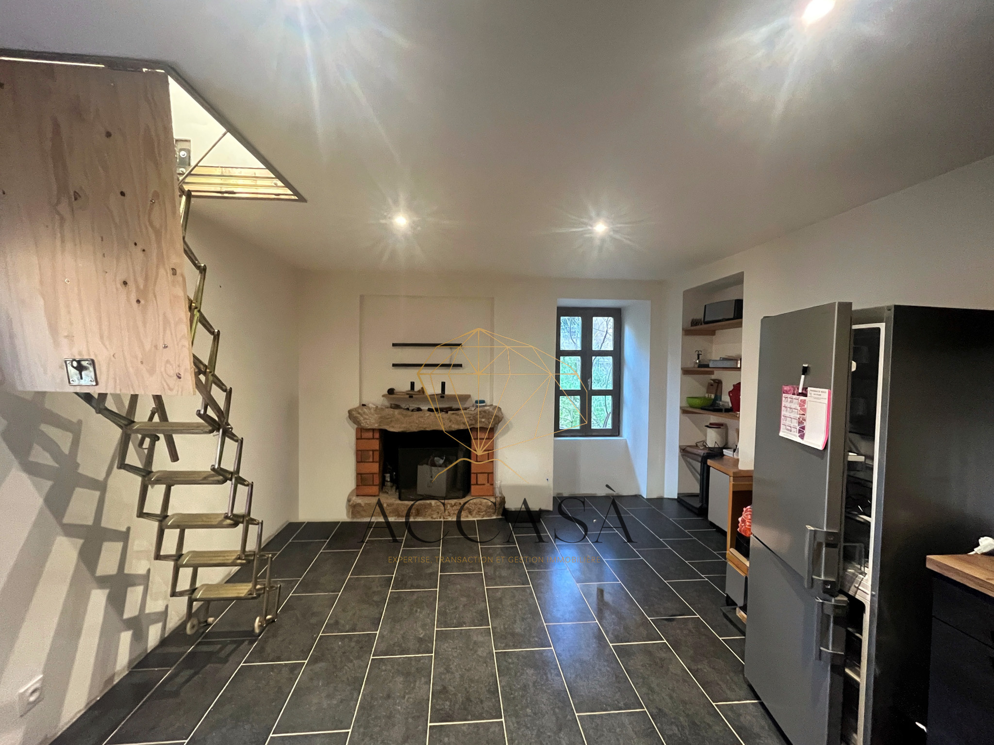 L'étage accueille un T3 en duplex avec sa terrasse privative dominant le village. Ce logement comprend un salon-séjour avec cheminée, une chambre avec salle d'eau, un WC indépendant et à l'étage une chambre avec salle de bains. Il est équipé d'une climatisation gainable assurant un confort optimal été comme hiver.