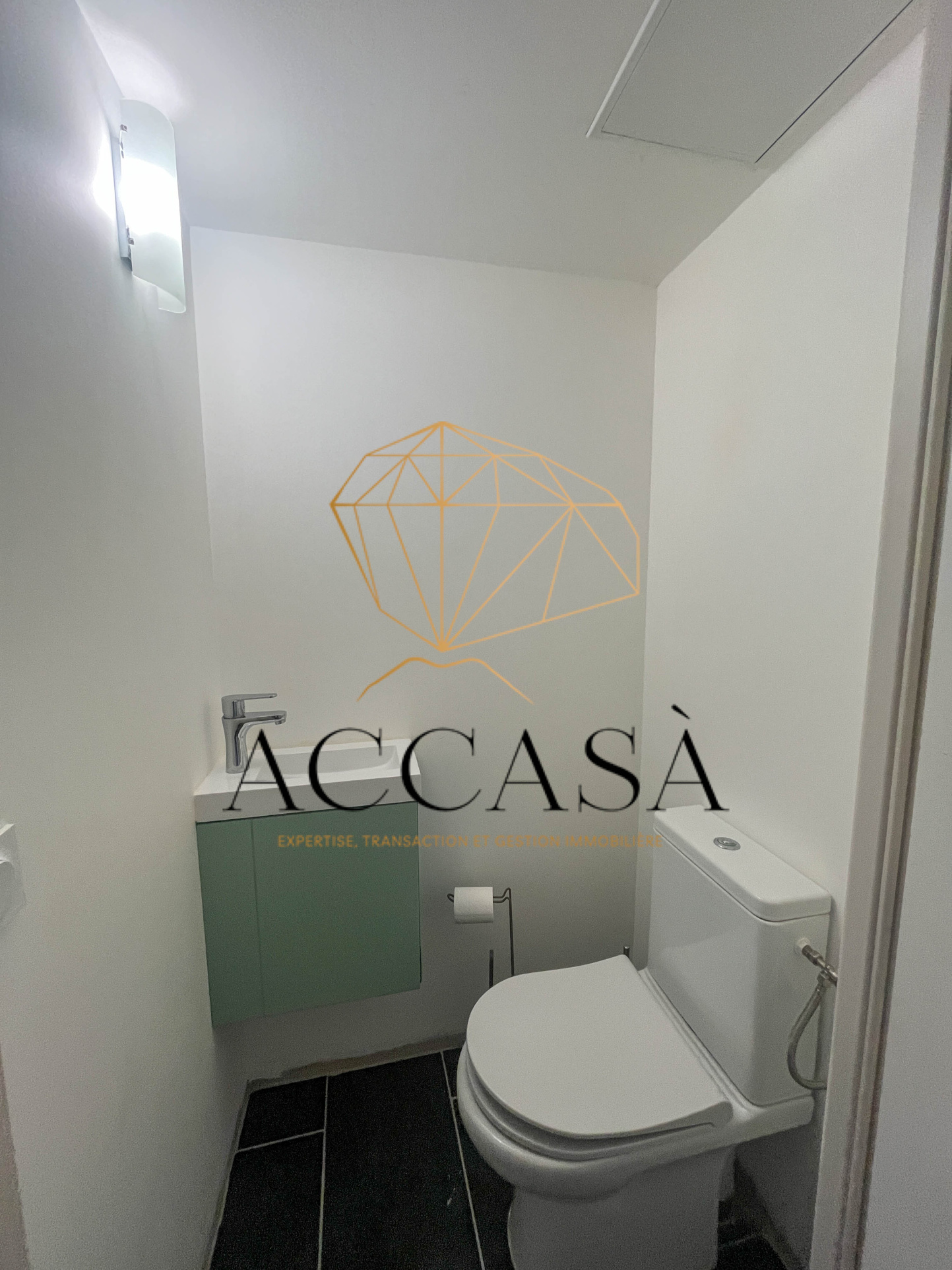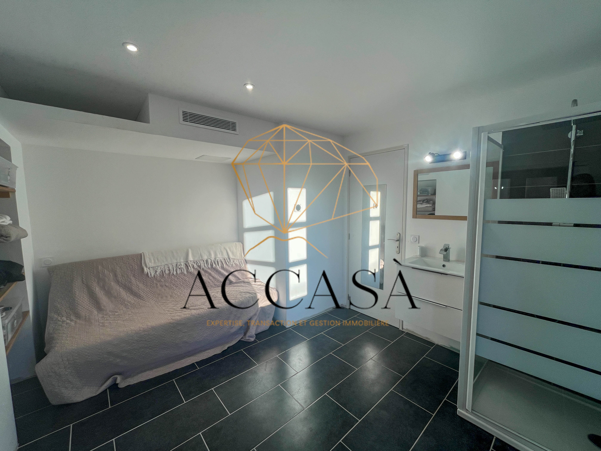 Le rez-de-chaussée abrite un agréable T2 composé d'un salon-séjour doté de la climatisation réversible, d'une chambre, d'une salle d'eau avec WC.