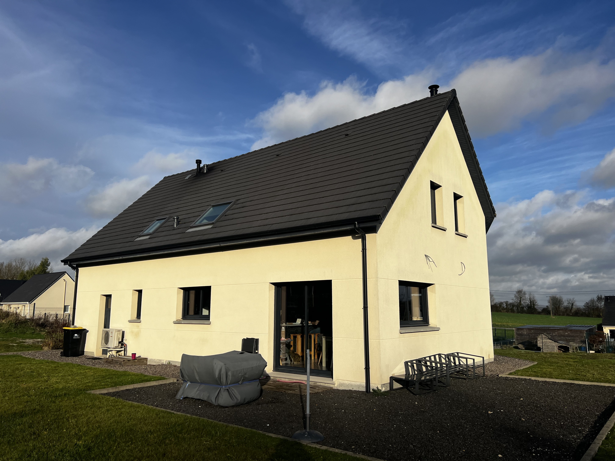 Exclusivite ! Pavillon de 2017 offrant de beaux espaces à seulement 11 minutes de Buchy et de Forges les eaux. Il comprend un salon ouvert sur salle à manger et cuisine aménagée et équipée, suite parentale avec dressing et sde, wc au rdc. A l'étage un palier dessert 3 chambres, un bureau, sdb avec wc et grenier. Cellier. Garage. Pompe à chaleur, poêle à bois, plancher chauffant. Assainissement individuel. Le tout sur environ 4469m2 de terrain avec bâtiment de stockage. Belle opportunité à saisir !