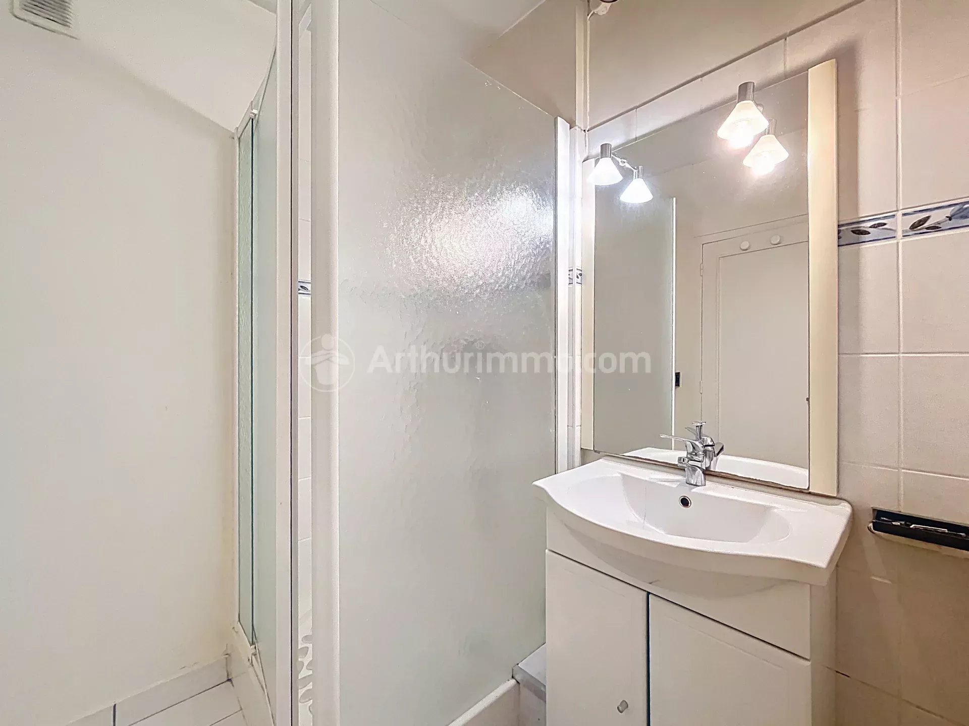 Cet appartement peut facilement être transformé en grand F2 en supprimant la cloison qui sépare la chambre du séjour.