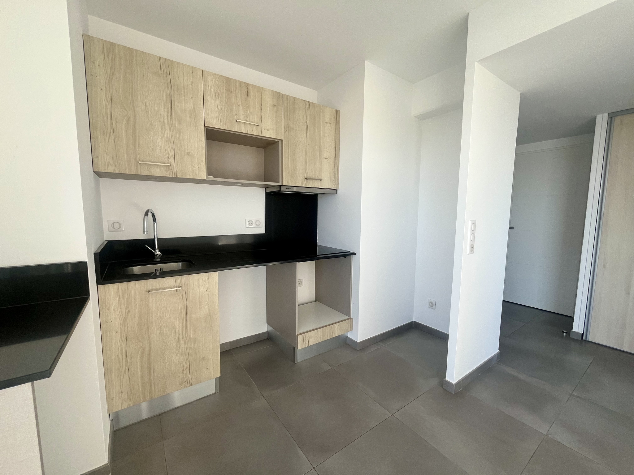 L'appartement se compose d'une entrée, d'un séjour avec cuisine ouverte, de deux chambres avec placards, d'une salle d'eau et d'un wc indépendant.