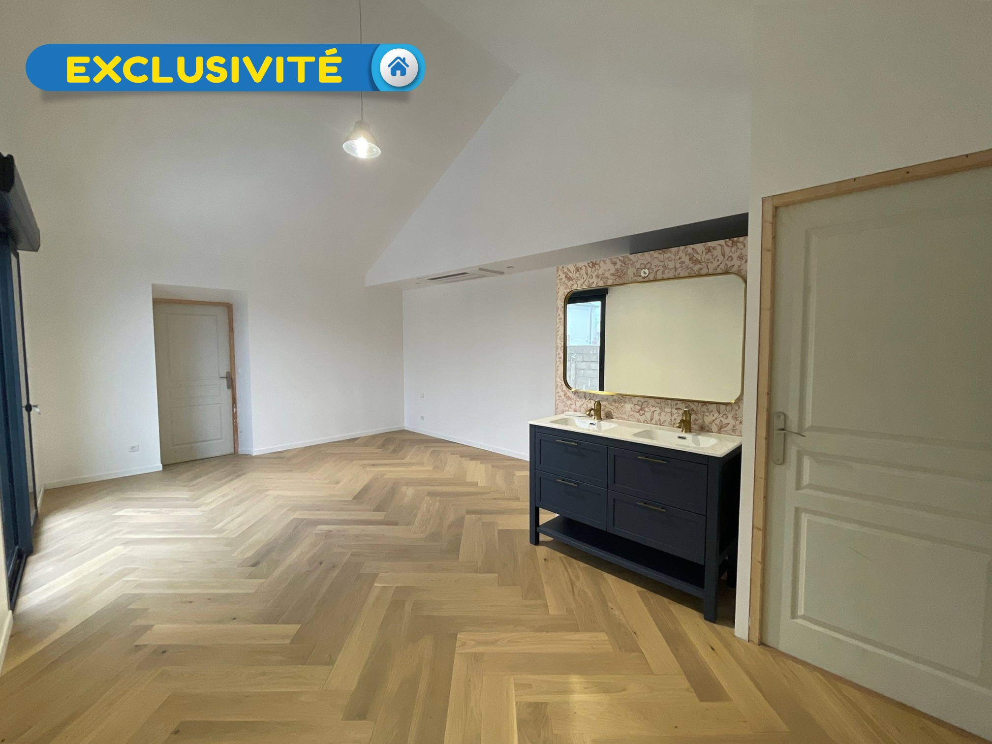 EXCLUSIVITE ! Maison en parfait état de 2013 offrant au rez-de-chaussée : une entrée, un salon-séjour lumineux avec cuisine aménagée et équipée, une buanderie avec WC, ainsi qu'une chambre parentale avec salle d'eau privative.