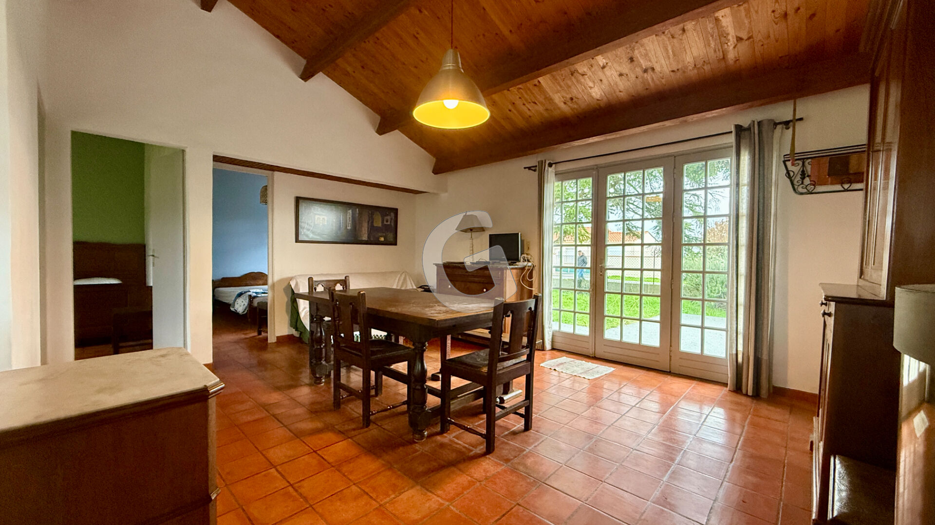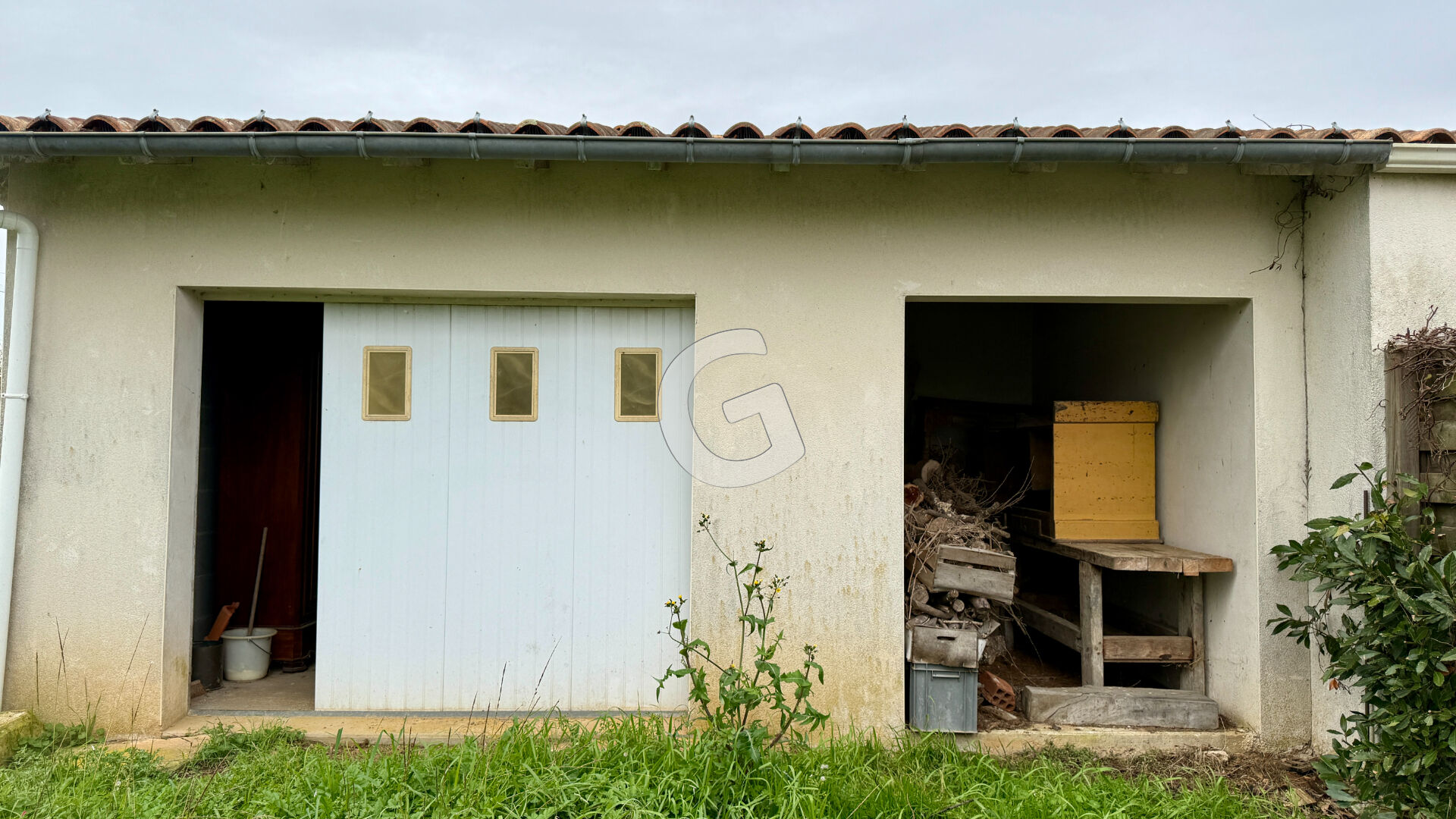 À l'extérieur, vous profiterez d'une terrasse idéale pour vos moments de détente, d'un garage attenant, et d'un second garage non attenant avec bûcher, parfait pour le stockage.