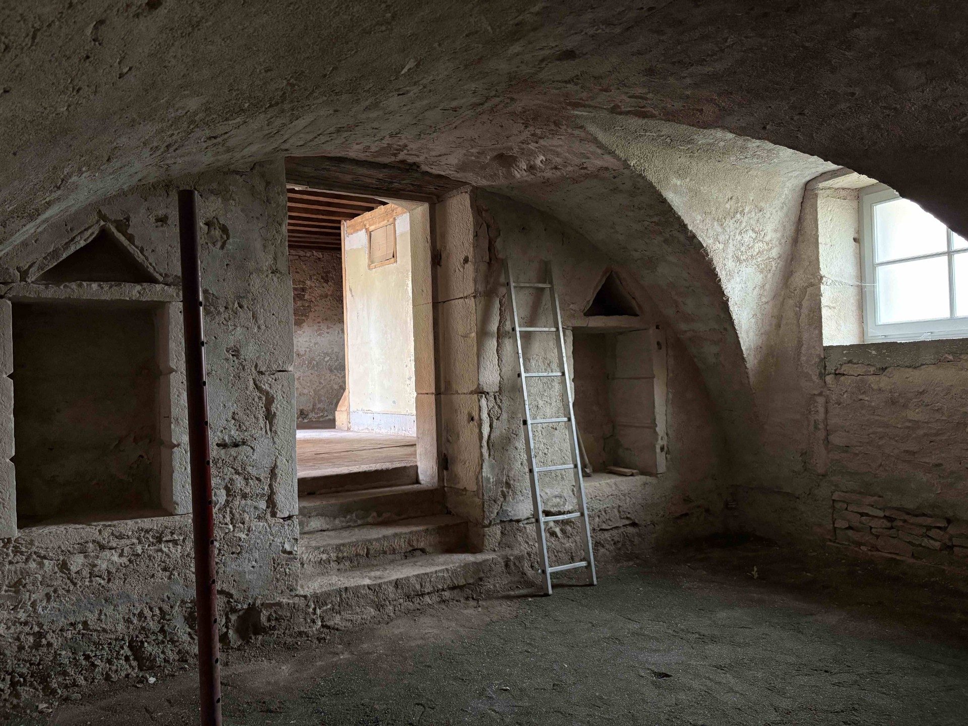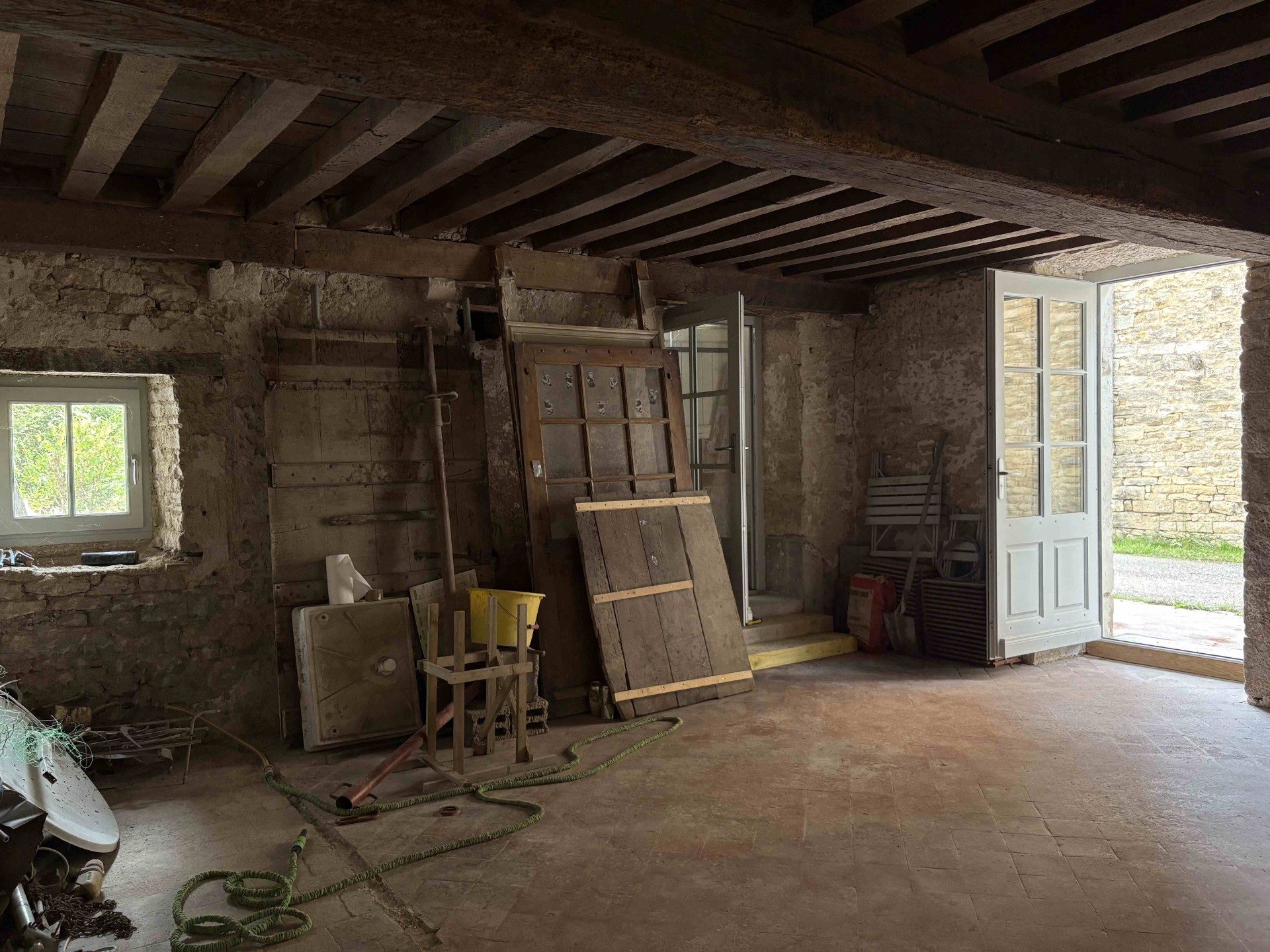 A VENDRE, LAIVES au coeur du village, maison en cours de rénovation avec terrasse de 30 m² + terrain séparé. Toiture neuve avec film de protection (garantie décennale). Elle comprend : au rez-de-chaussée (60 m²), une pièce principale avec accès direct sur terrain de 45 m² avec petit appentis, espace salon dans une pièce voutée. Au dessus : deux chambres et espace sanitaire à créer. Les huisseries sont en double vitrage de haute qualité, l'isolation et le raccordement à l'assainissement communal sont à faire ainsi que tous les aménagements intérieurs. Autre petit terrain de 100 m² clos de mur, non attenant, au bout de la cour indivise. Beau potentiel pour cette maison de village, avec un gros oeuvres en très bon état. Cette maison vous attend pour un bel aménagement ! Le tout dans le charmant village de Laives à proximité des commodités de Sennecey le Grand.