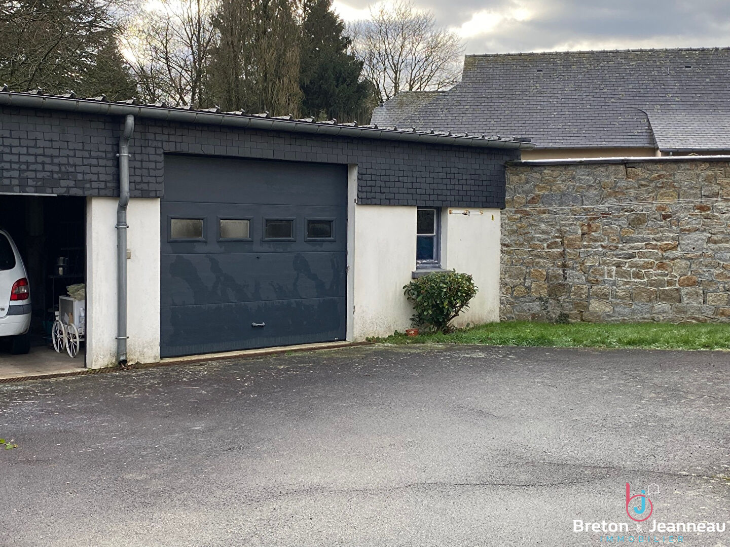 En extérieur, deux grands garages avec porte motorisée