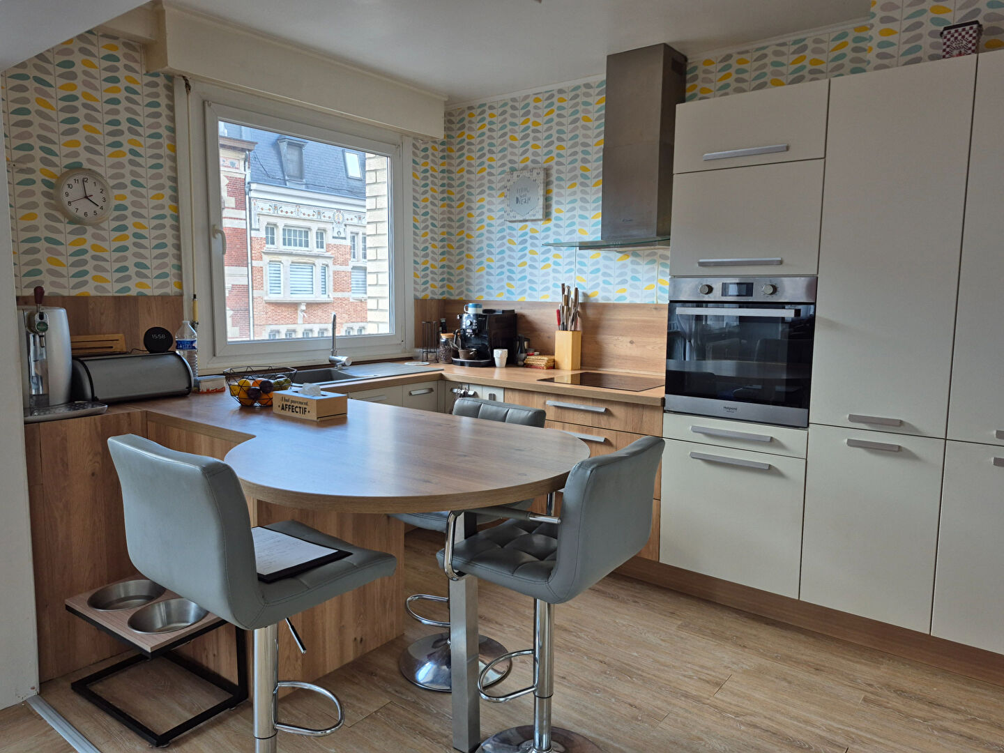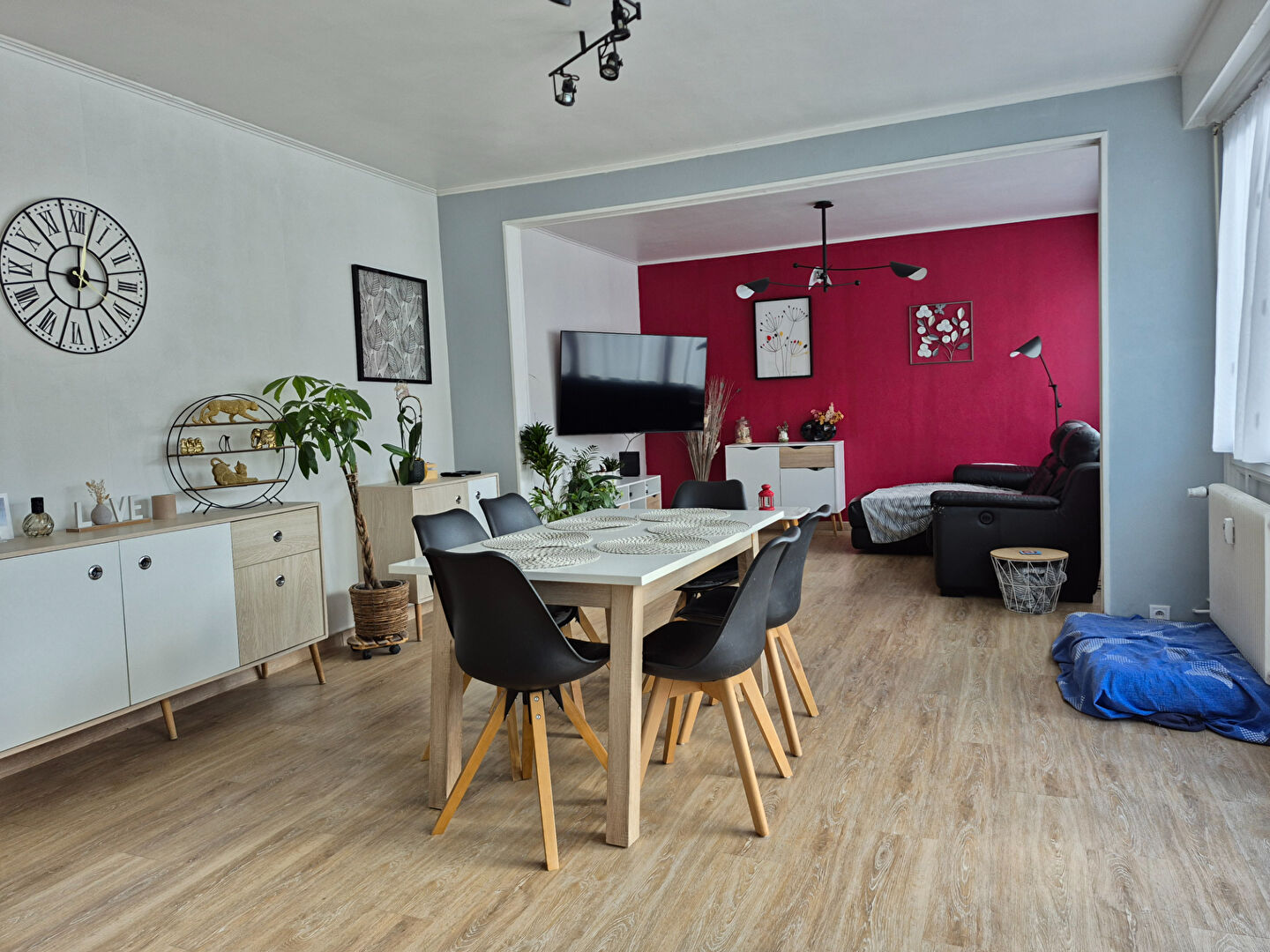 TOURCOING centre ville Appartement traversant de type 4, situé au 2ème étage d'un immeuble équipé d'un ascenseur, d'une surface habitable de 102,46 m². Cet appartement comprend trois chambres, un salon séjour spacieux de 32,32 m², une cuisine équipée ouverte avec un espace repas , une salle de bains équipée (douche, bain, vasque) et des toilettes indépendantes. L'orientation sud-ouest de la pièce principale et la double exposition assurent une luminosité optimale. De plus, l'environnement calme et la proximité du centre ville et de toutes les commodités en font un lieu de vie idéal. Le bien bénéficie d'un garage fermé et d'une cave, il est situé dans un emplacement privilégié. cet appartement allie confort et praticité. Il est équipé de double vitrage, entièrement parqueté, il est en très bon état général