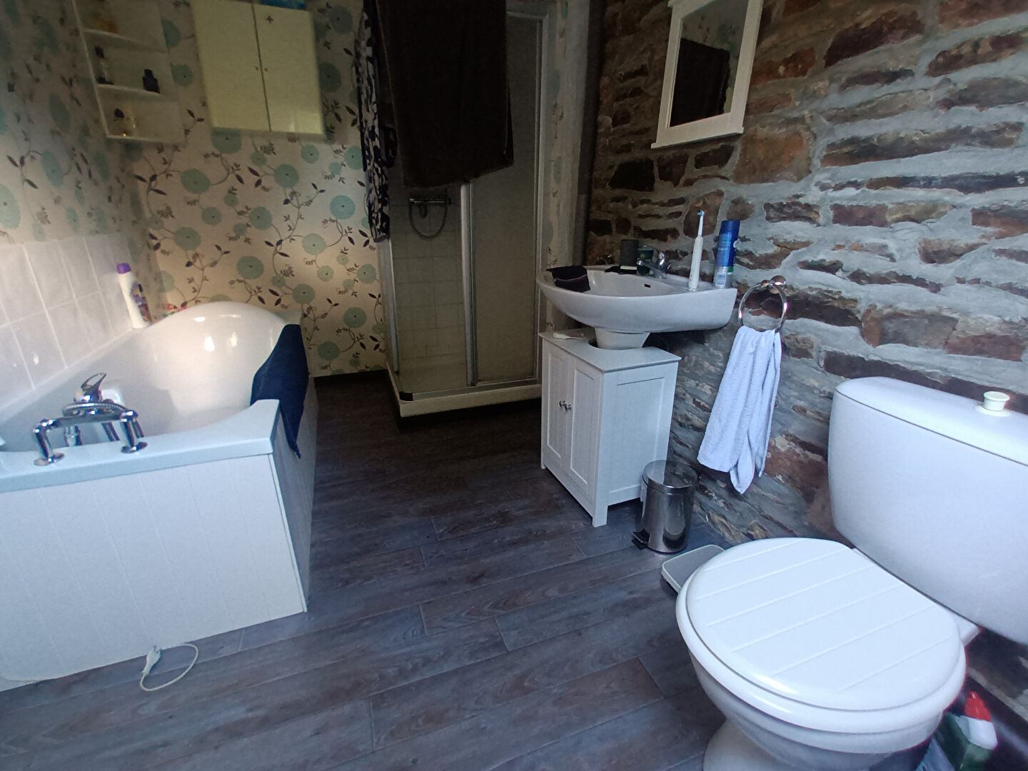- à l'étage : palier desservant une belle chambre de 18m², mezzanine aménagée en coin nuit, salle de bains (douche et baignoire) avec wc.