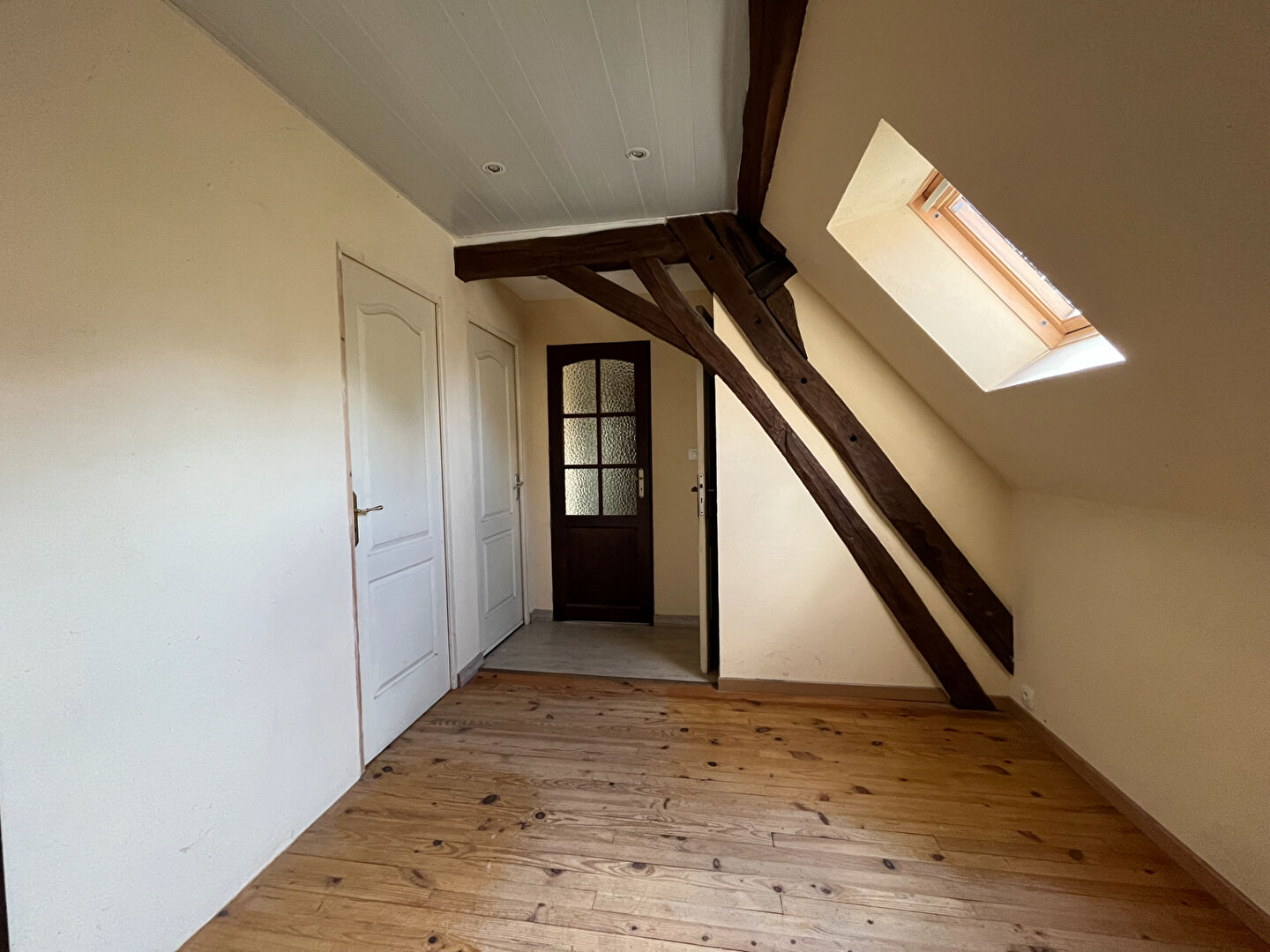 Un palier desservant, une grande chambre avec mezzanine et poutres apparentes, une deuxième chambre, un bureau pouvant servir de chambre, une salle d'eau et un WC.