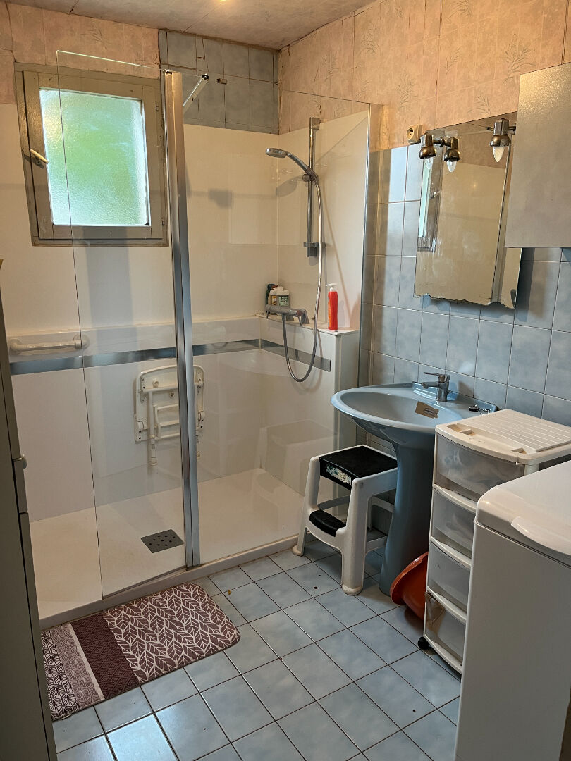Dans le prolongement, vous découvrirez un salon / salle à manger spacieux et lumineux, équipé d'un poêle à granulés récent, avec un accès direct à la terrasse, idéale pour profiter des beaux jours. Ce même dégagement mène également à une chambre supplémentaire, une salle d'eau et des WC indépendants.
