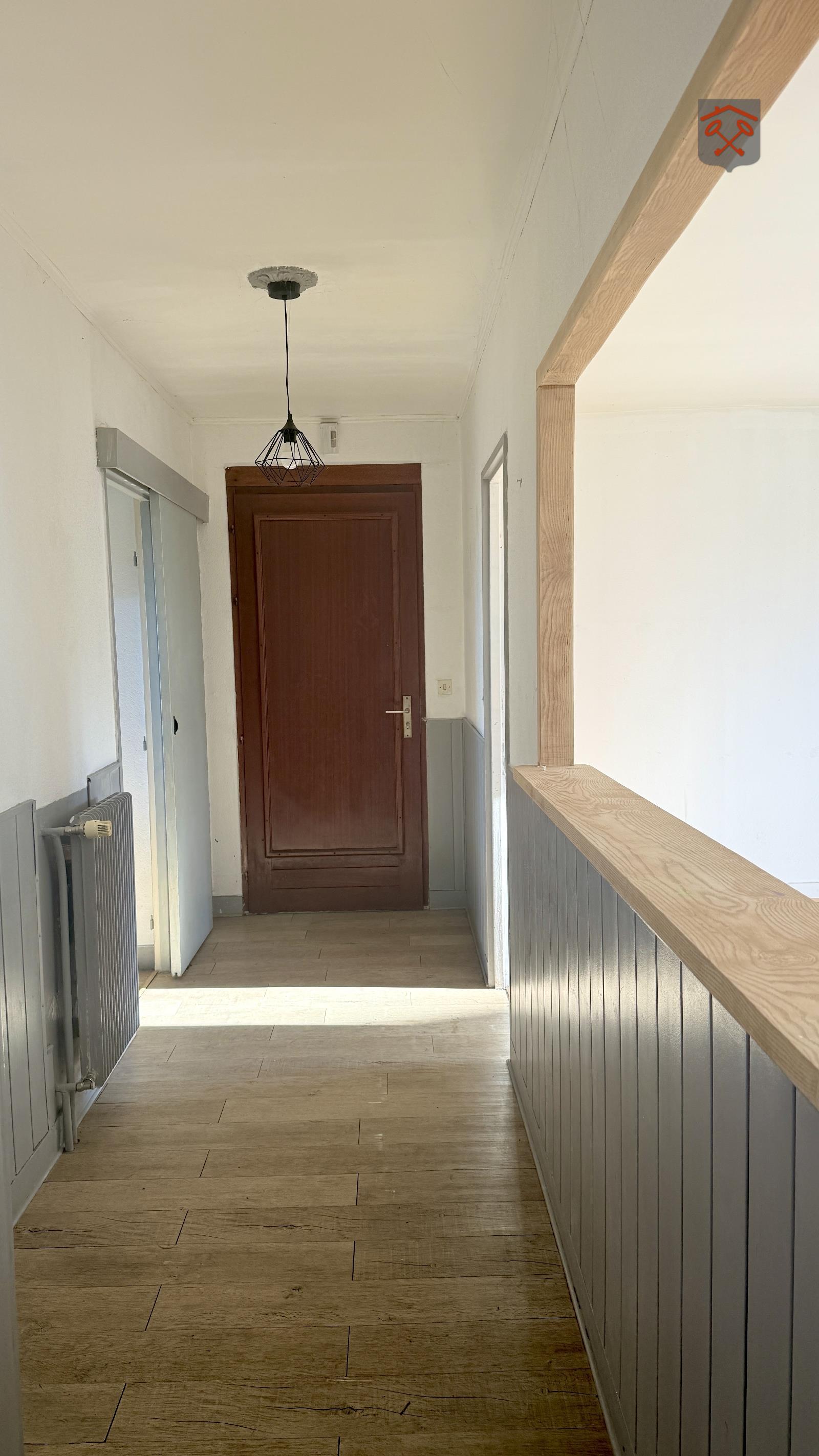 Entrée, séjour avec poele à granulés, cuisine aménagée, 2 chambres, salle d'eau, wc.