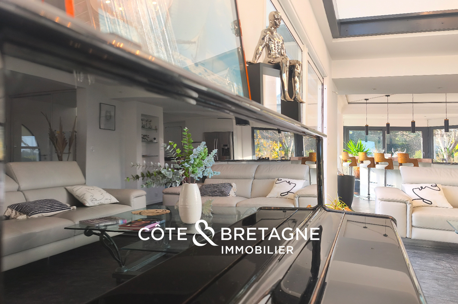 À l'abri des regards, cette demeure de prestige s'ouvre pleinement face à l'horizon, offrant une vue spectaculaire et dominante sur la mer et l'île de Bréhat. Un cadre rare et recherché, où calme, lumière et nature composent un art de vivre unique.