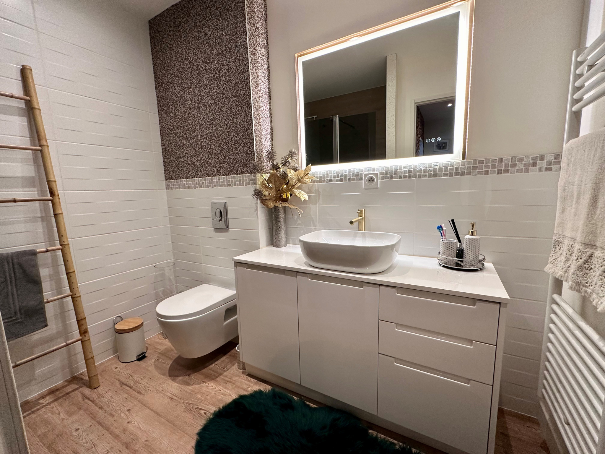Maison individuelle de 109 mètres carrés habitables, répartis sur deux niveaux, elle offre de belles finitions et une esthétique résolument contemporaine. Elle dispose de deux chambres, d'une salle de douche, et d'un wc à l'étage ainsi que d'une suite parentale avec dressing et salle d'eau. Cette construction de 2020 vous apportera tout le confort moderne et les dernières normes.