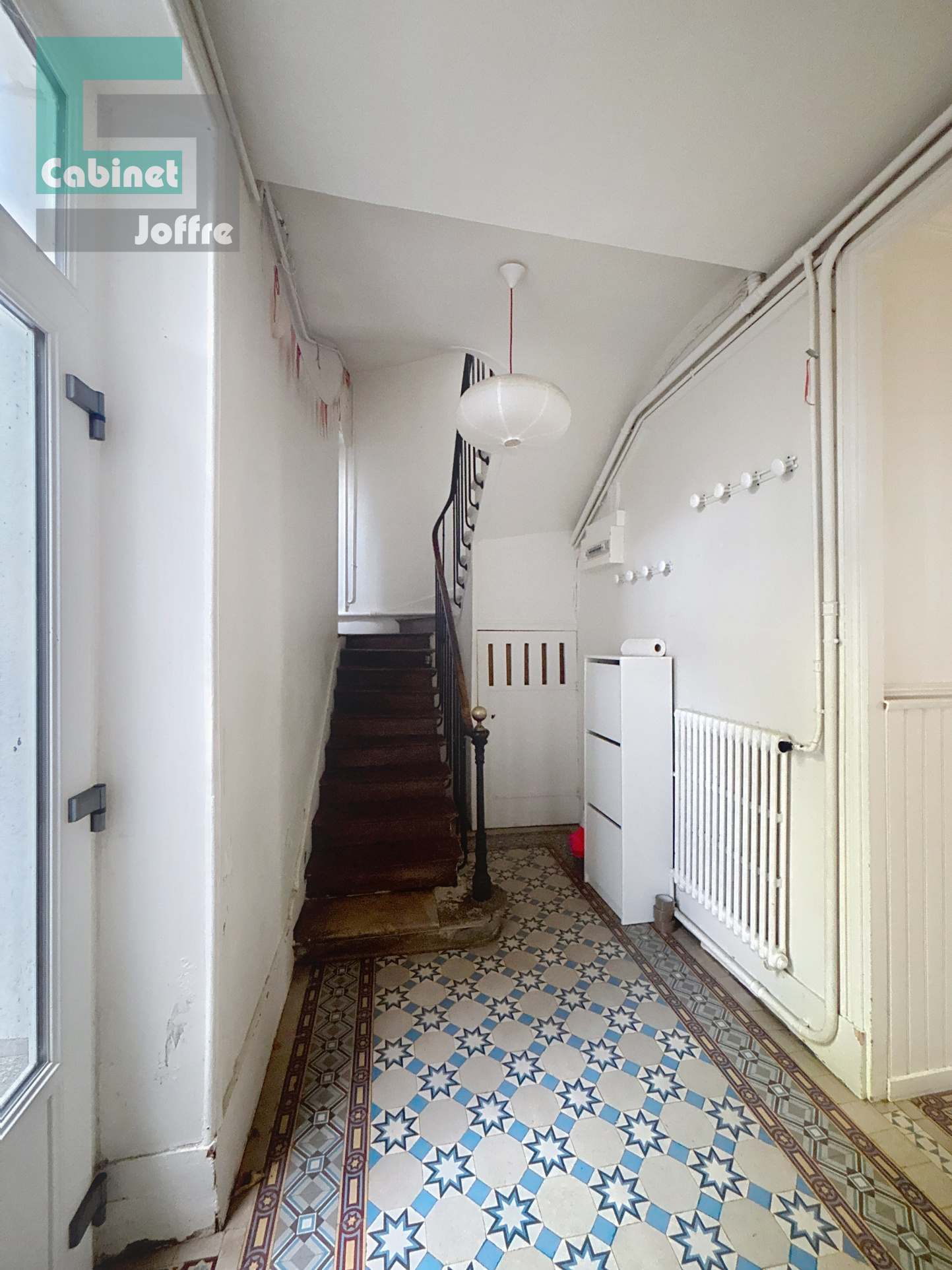 Au rez-de-chaussée : une entrée avec carreaux de ciment, un salon et une salle à manger distincts, une cuisine indépendante, un accès à la cave et une porte ouvrant sur la terrasse et le jardin arrière. Une belle hauteur plafond de 2,81 m. Il est possible de créer une ouverture entre la salle à manger et la cuisine afin d'obtenir une belle pièce de vie conviviale.