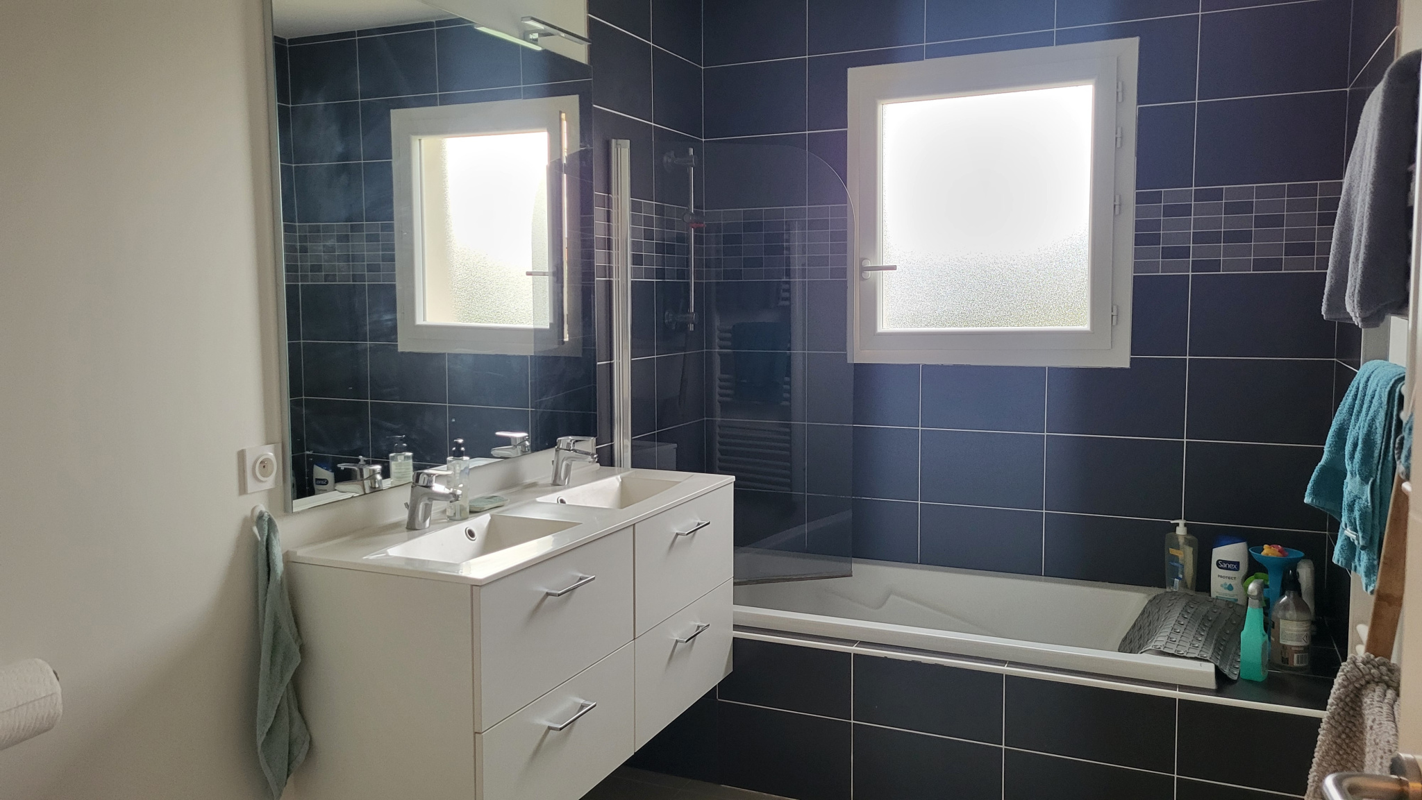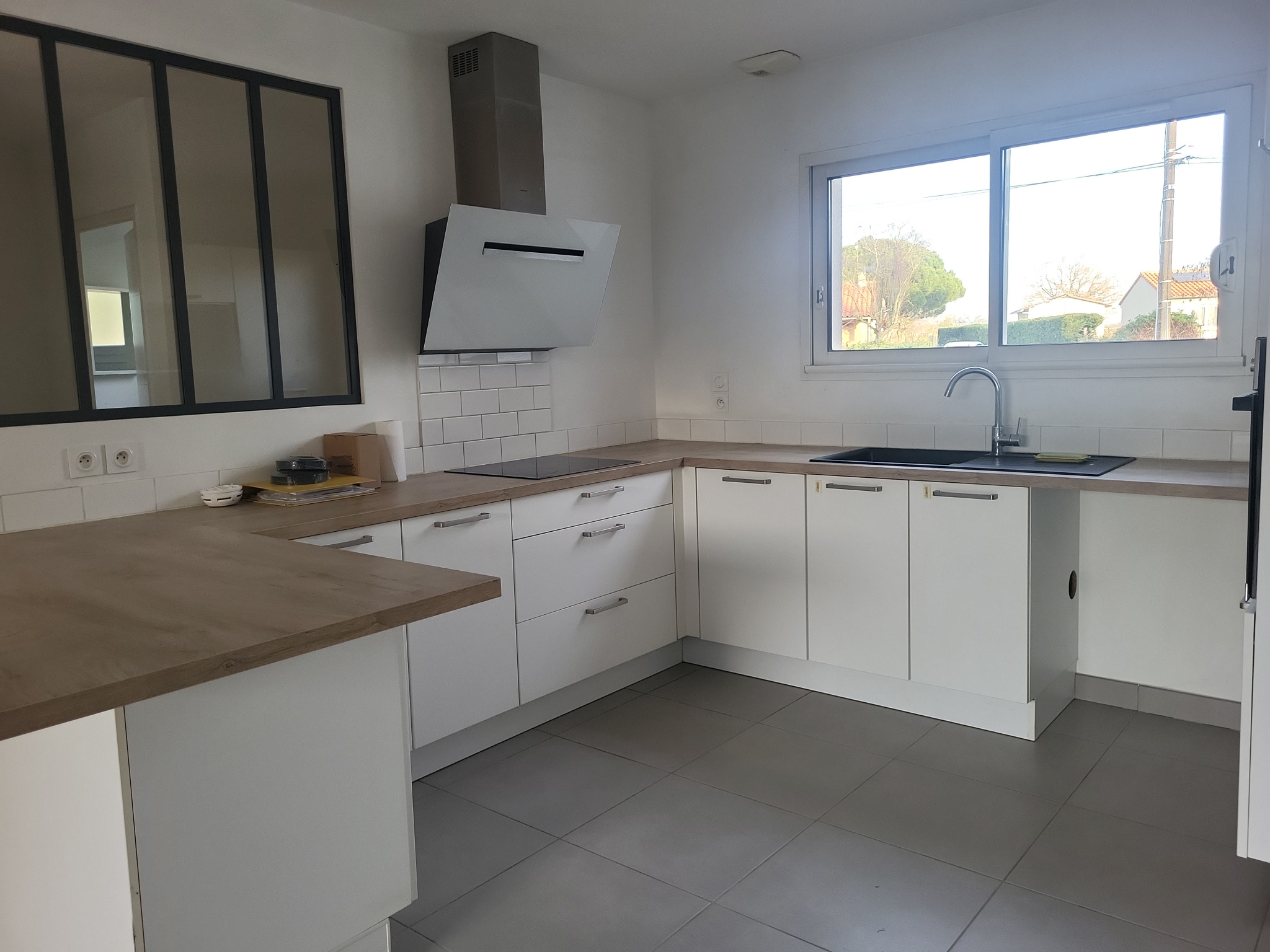 OFF MARKET, en Exclusivité, viila récente sous garantie décennale et dommage-ouvrage, T5 de 114 m2 de plain-pied, salon avec cuisine US équipée de 49 m2, 4 chambres de 10 à 12 m2, salle de bains, salle d'eau, garage attenant, poêle à granulés programmable, chauffe eau thermodynamique, volets roulants motorisés, puits.