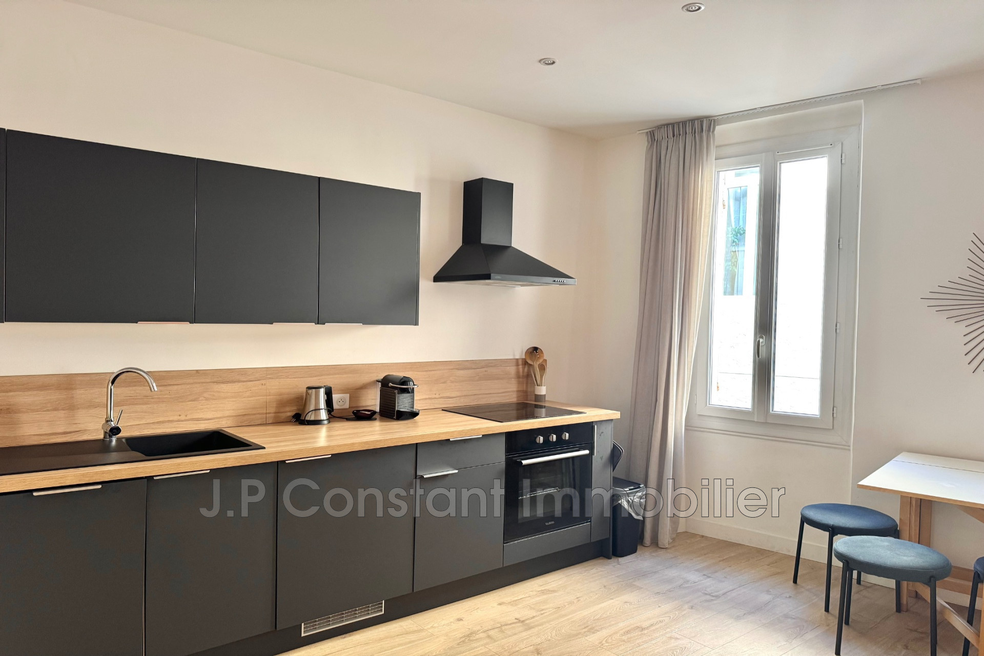 Beau T2 spacieux et entièrement rénové avec de belles prestations. Il se compose d'un hall, une vaste pièce de vie lumineuse avec cuisine américaine.