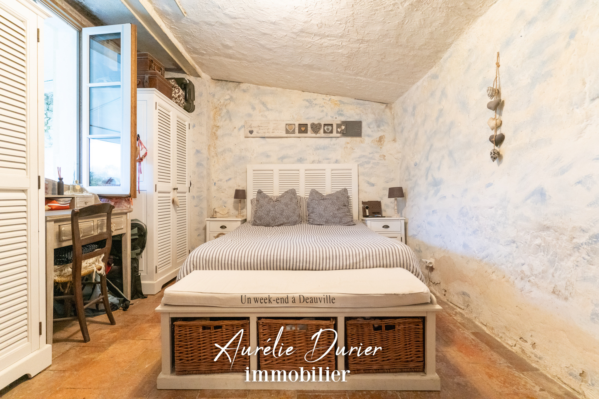 Nichée en hauteur, cette demeure baignée de lumière offre un cadre de vie paisible et enchanteur. Les sols en tomettes, les murs en pierre et la cheminée créent une atmosphère chaleureuse et atypique.