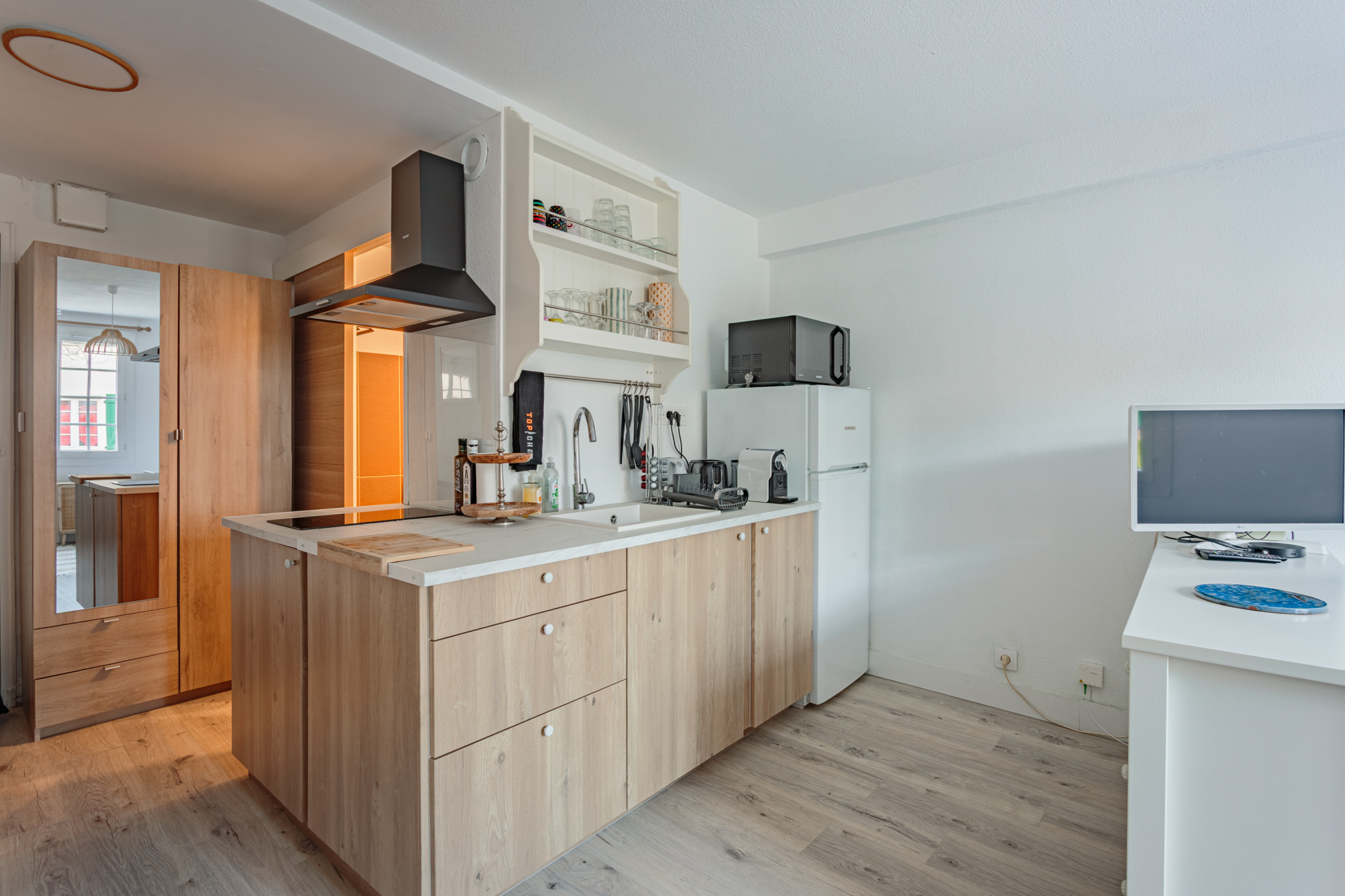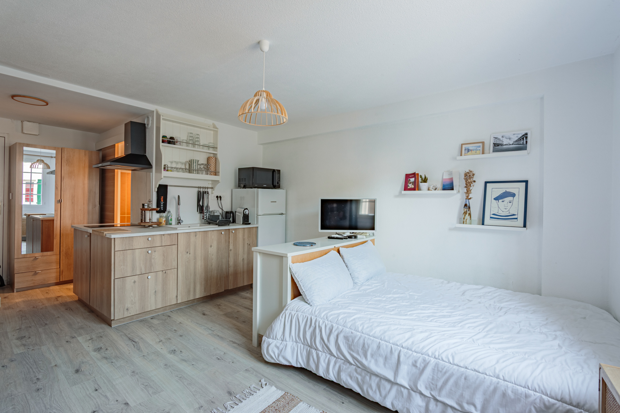Charmant studio entièrement rénové, situé au premier étage d'une bâtisse de caractère aux faibles charges. D'une surface d'environ 20 m2, il constitue un pied-à-terre idéal, à deux pas de la gare et du centre historique, tout accessible à pied.