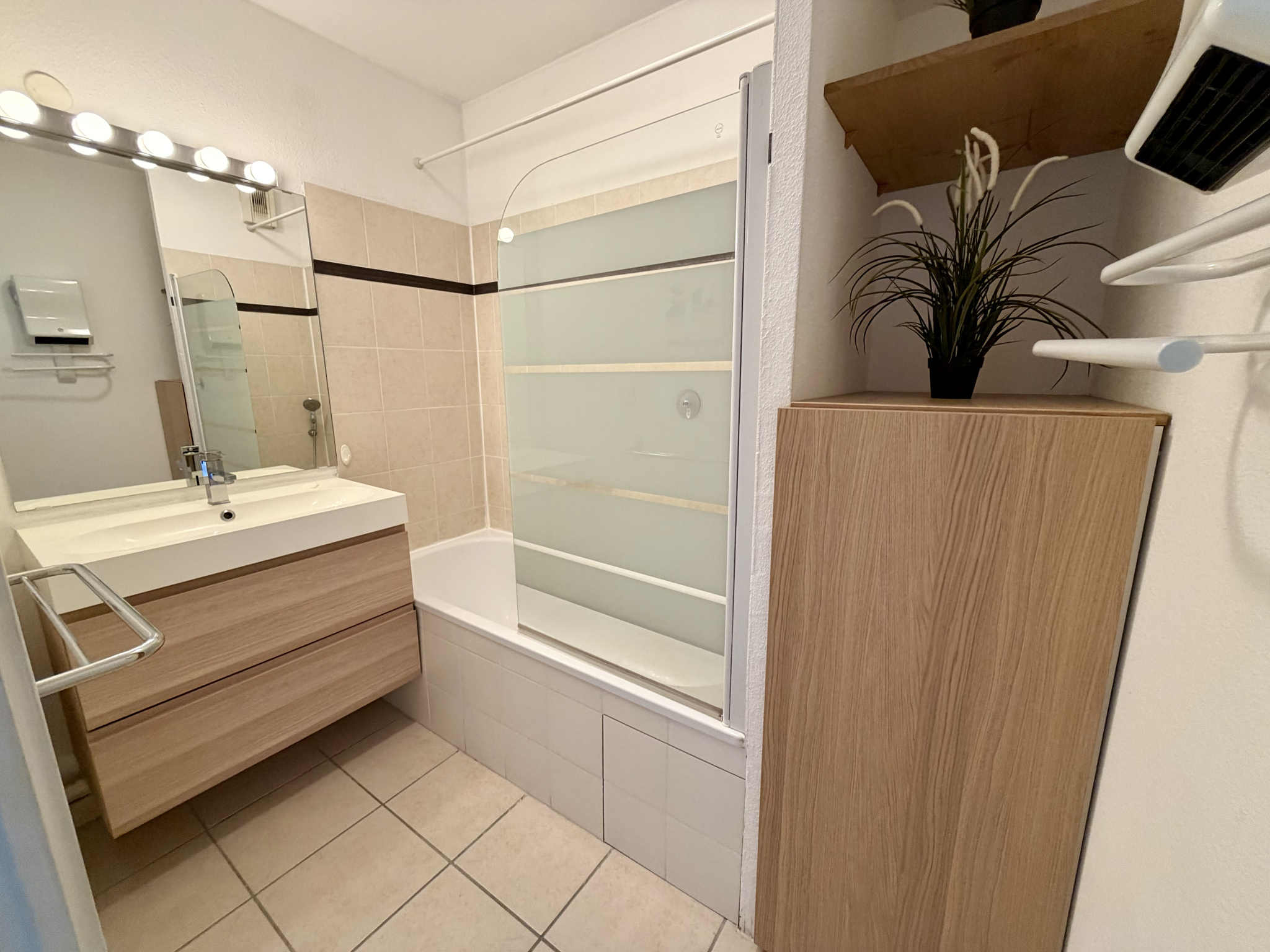 L'appartement dispose également d'une penderie, d'une chambre avec rangements intégrés, d'une salle de bain avec placards ainsi que d'un WC indépendant.