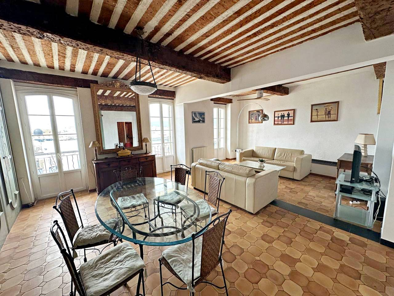 Grand séjour / salle à manger ouvrant sur trois balcons face au port