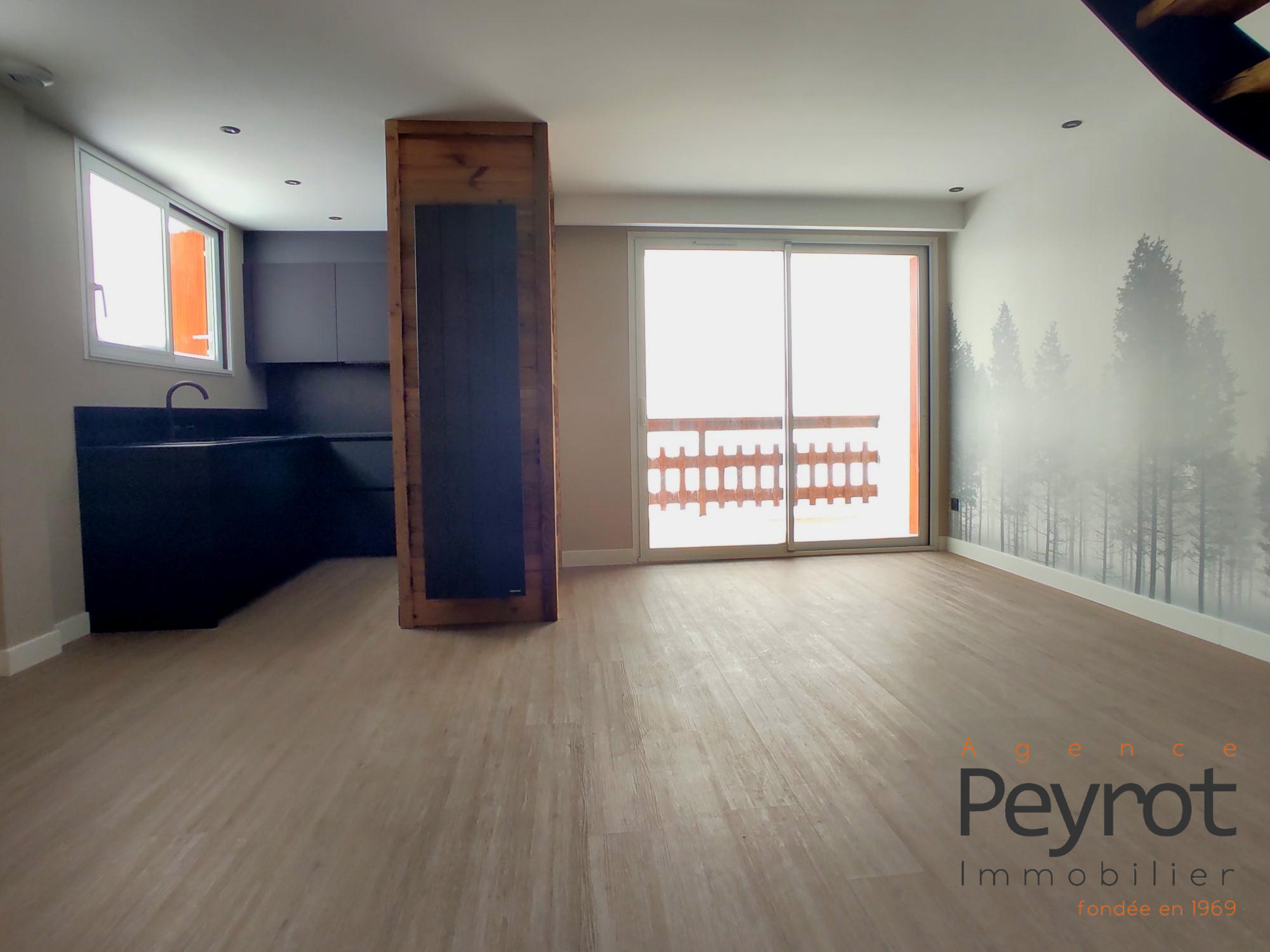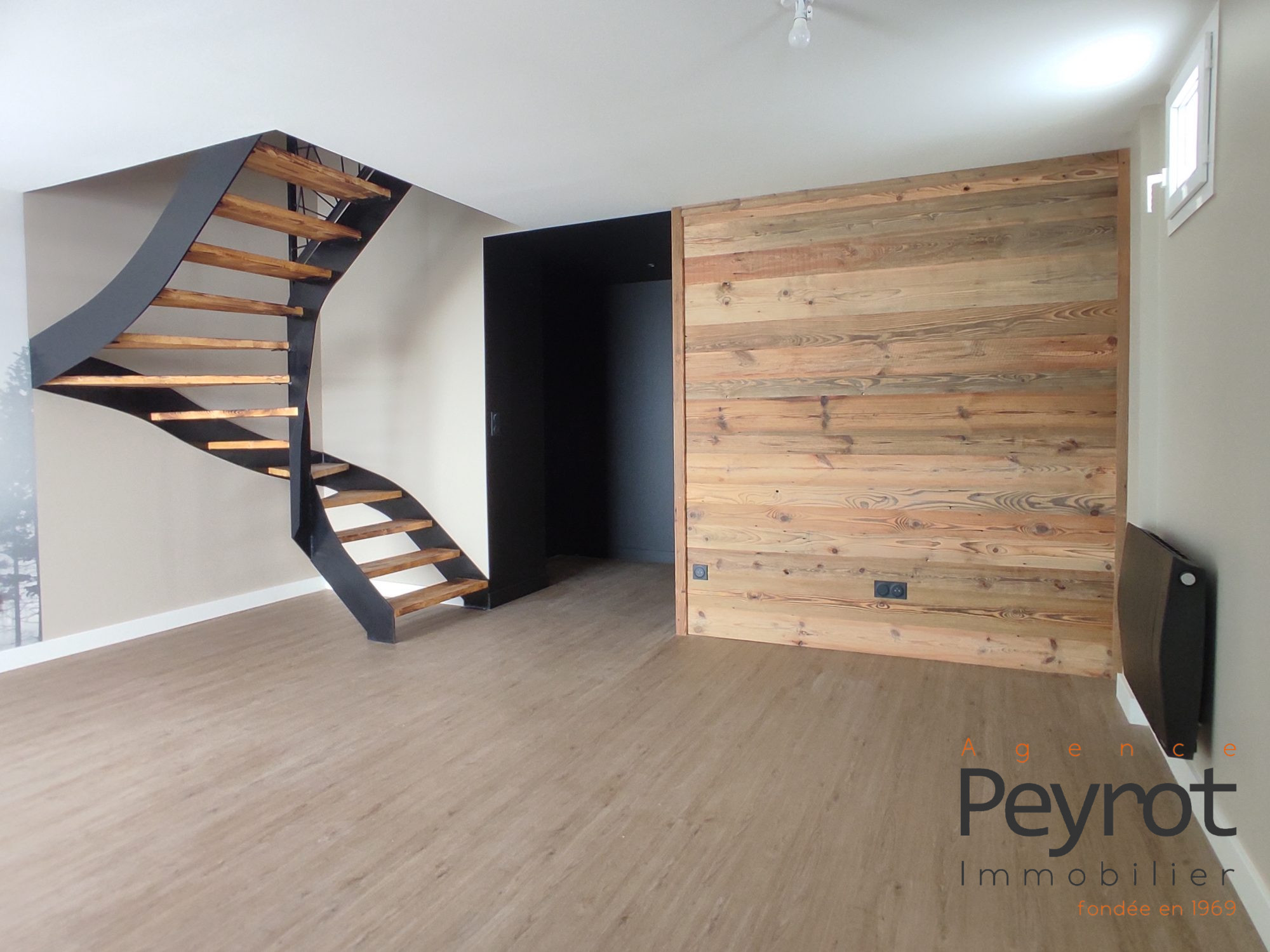 APPARTEMENT DE TYPE 5 EN DUPLEX entièrement rénové composé en RDC d'un très grand séjour cuisine salon donnant sur un balcon avec vue village, montagnes et lac. D'une chambre avec placards et salle d'eau, d'un WC et d'une buanderie. A l'étage deux chambres avec rangements, une salle d'eau WC et une chambre sous pente avec rangements en profondeur. Centre du village.