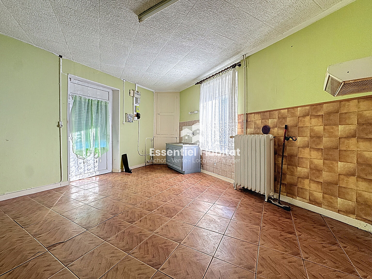 Entrée, pièce de vie, cuisine.