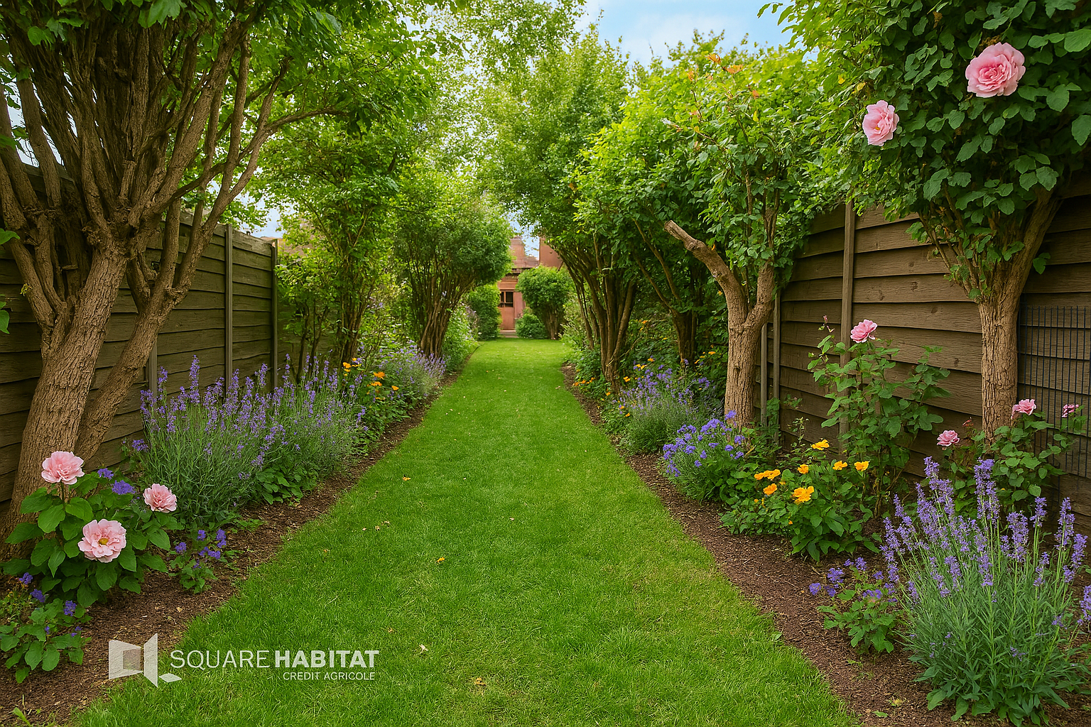 Son entrée s'ouvre sur un espace de vie baigné de lumière où se succèdent salle à manger et salon sur parquet bâtons rompus puis une grande cuisine avec puits de lumière et accès à une terrasse cosy, à l'abri des regards donnant sur un grand et beau jardin bien exposé et sans vis-à-vis.