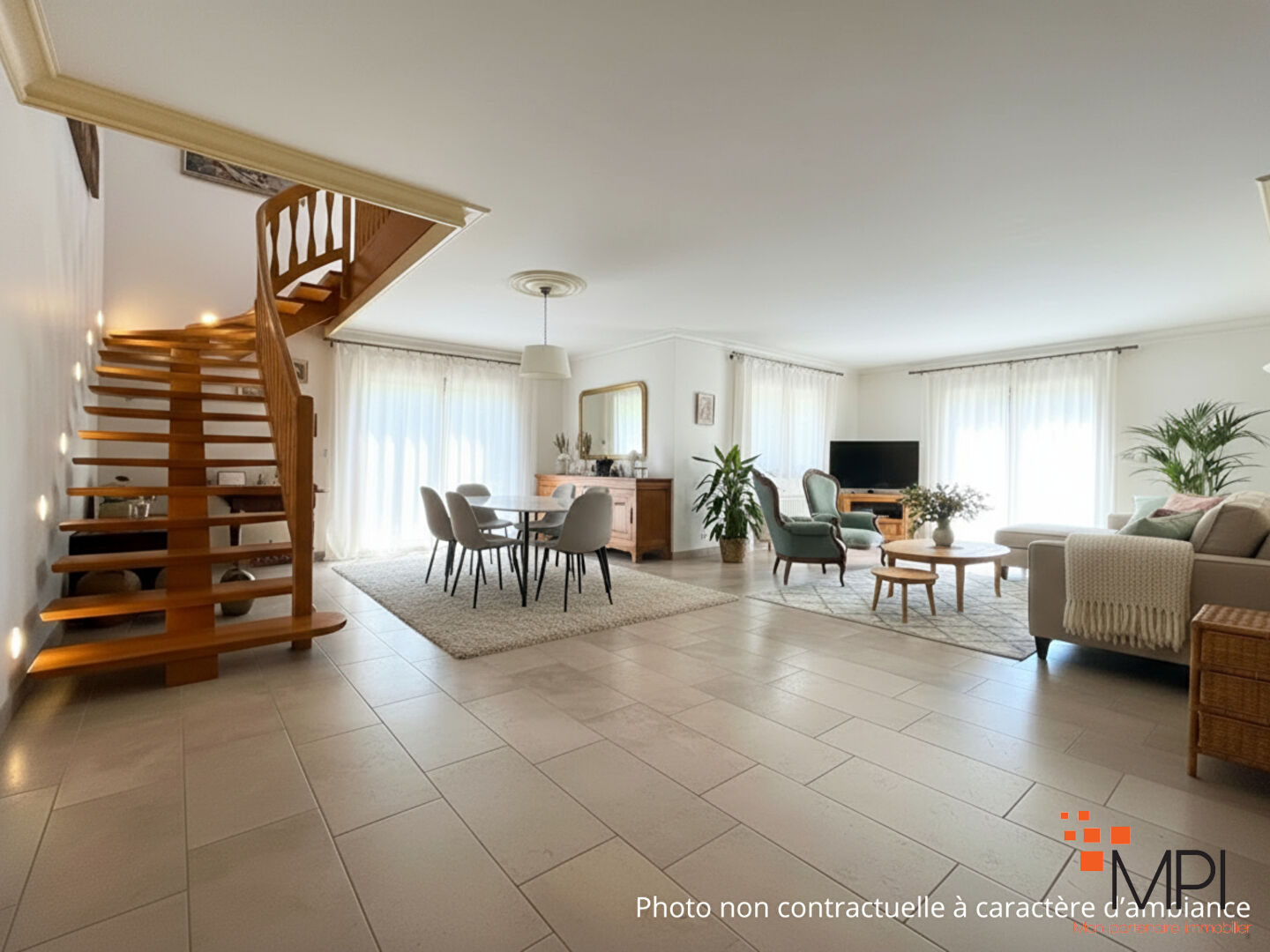 Venez découvrir cette élégante maison d'architecte de 246 m², idéalement située dans le centre-ville de la commune de LE RHEU, dans un quartier résidentiel prisé, à quelques pas des commerces, écoles et transports.