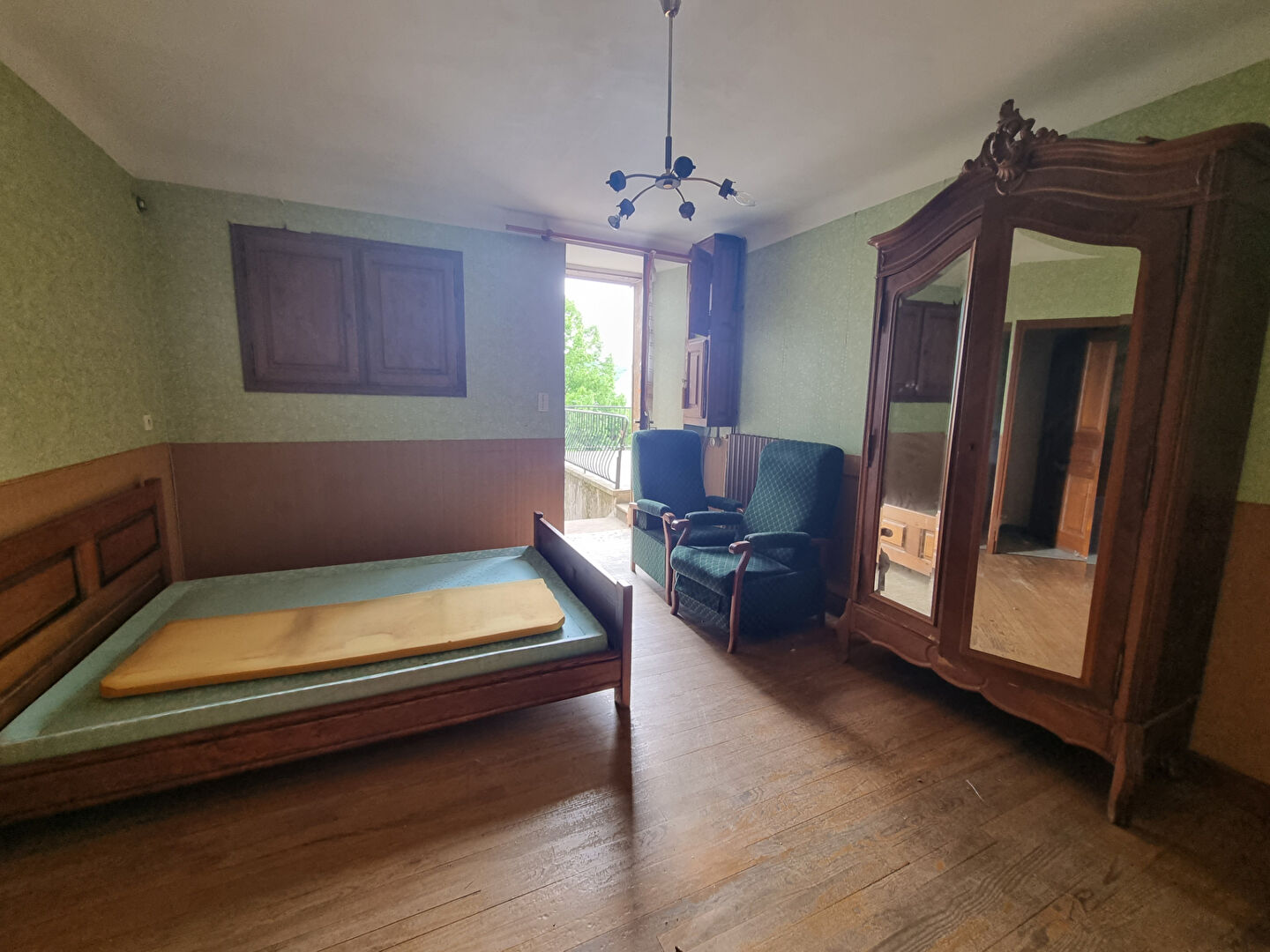 Maison avec terrasse, en rdc, 1 cuisine, 1 salle à manger, 1 salon, 1 wc et 2 pièces à usage de cellier et stockage. A l'étage, 4 chambres avec parquet massif et 1 salle d'eau. WC. Combles non aménagés.