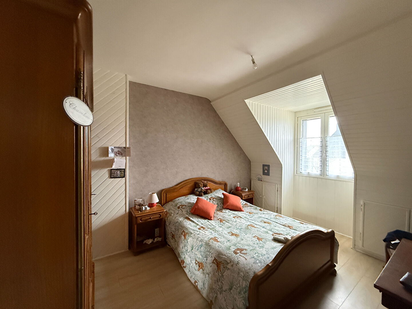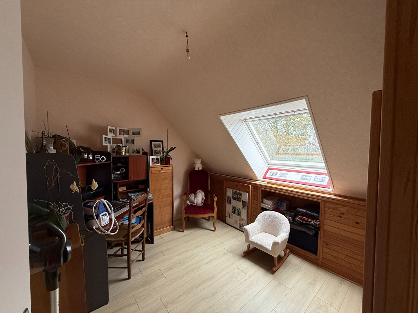 À l'étage, l'espace nuit se compose de trois chambres, dont une disposant d'un espace grenier attenant, offrant un beau potentiel d'aménagement en dressing ou future salle de bains selon vos besoins. Une salle de bains avec WC complète ce niveau.
