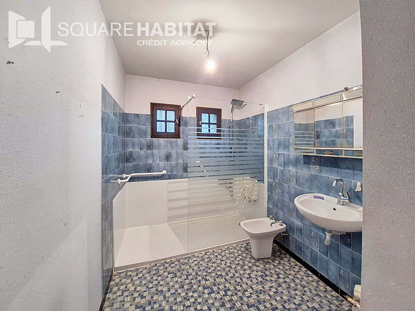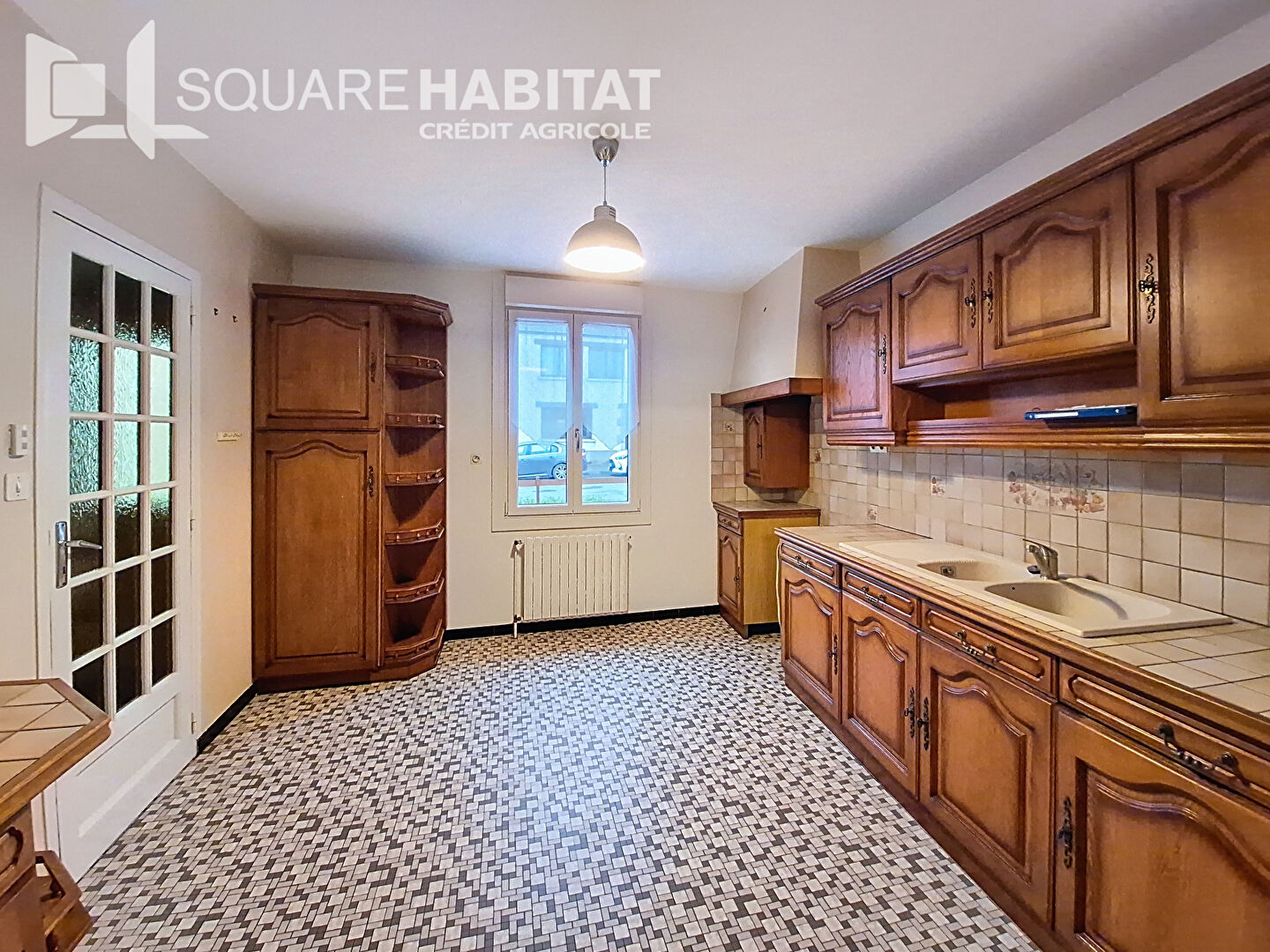 À l'étage, un grand palier mène à trois spacieuses chambres et à une salle d'eau (à rénover), offrant tout le confort nécessaire pour une famille. Un garage attenant vient compléter ce bien. Terrasse et jardin clos.