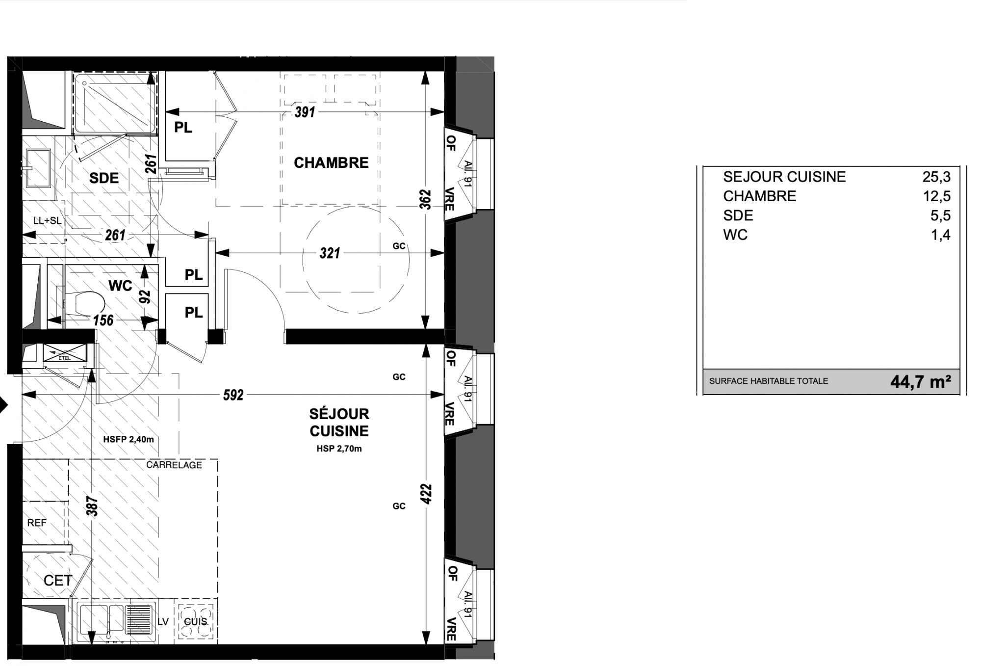Séjour 25m2, wc séparé, suite parentale.