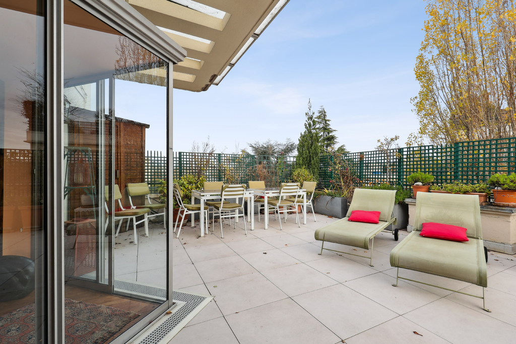 Trois petits balcons supplémentaires prolongent les espaces extérieurs, offrant par endroits une perspective unique sur la Tour Eiffel.