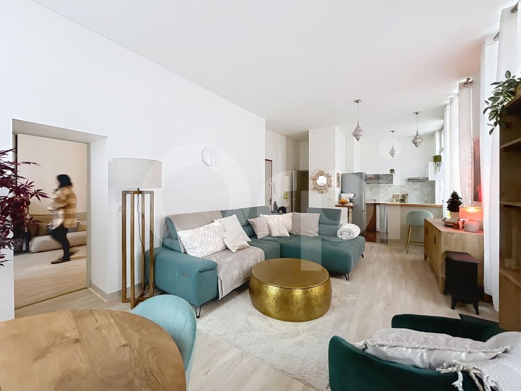 d'une superficie de d'environs 78m², Il offre un séjour lumineux donnant l'accès a un balcon filant, cuisine ouverte, 2 chambres. Idéal pour couple ou famille cherchant le charme de l'ancien avec confort moderne. Prix demandé : 148 500 €