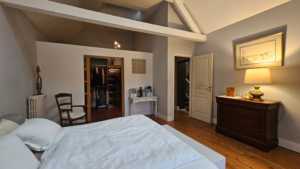 Vous bénéficierez au premier étage d'une grande chambre avec dressing, possibilité de créer un ascenseur accès au RDC, d'une salle d'eau, de toilettes indépendant et de deux autres chambres.