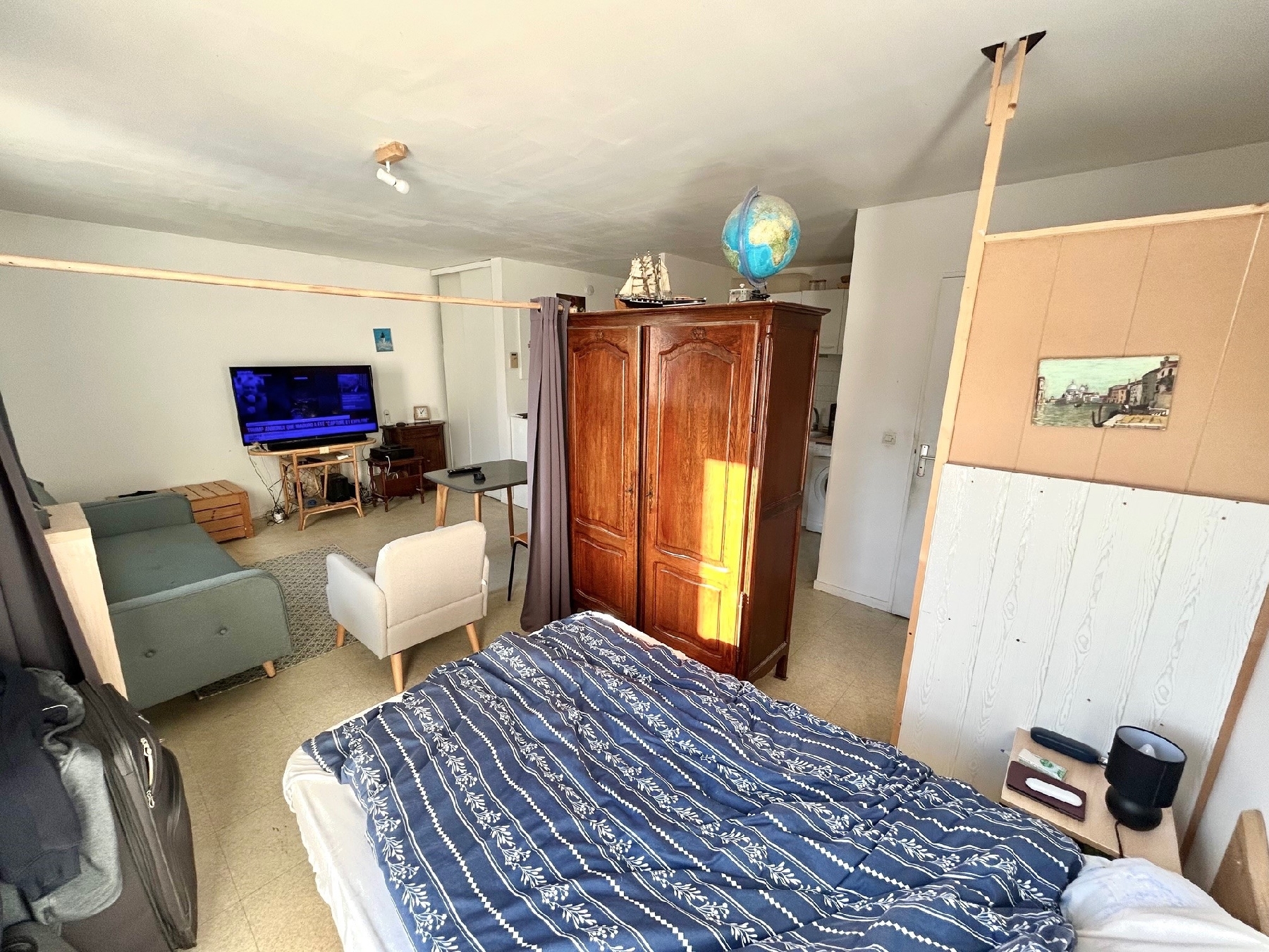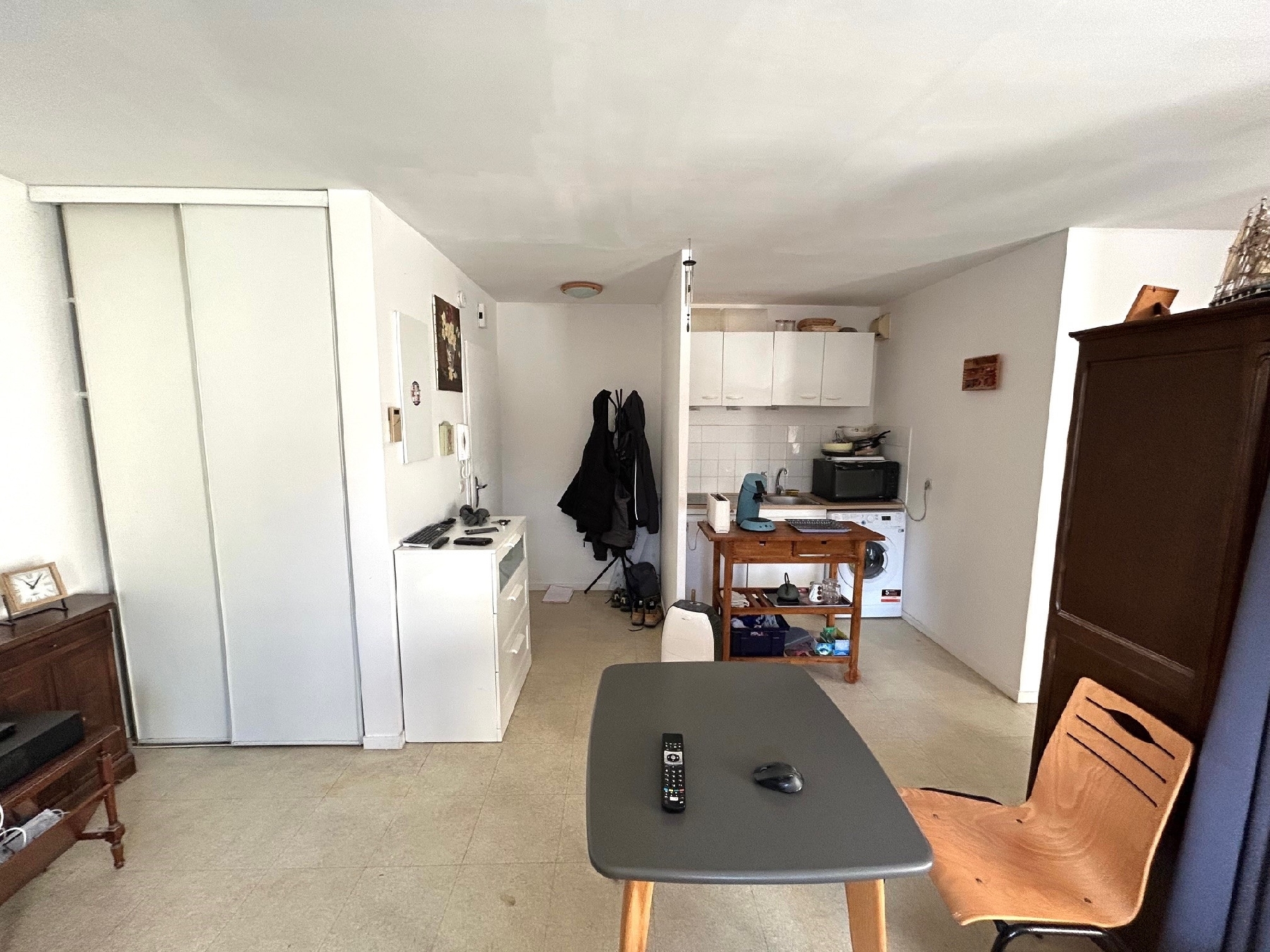 Studio 33 m2 composé d'une grande pièce principale avec coin cuisine, coin nuit, rangements, salle d'eau avec wc.