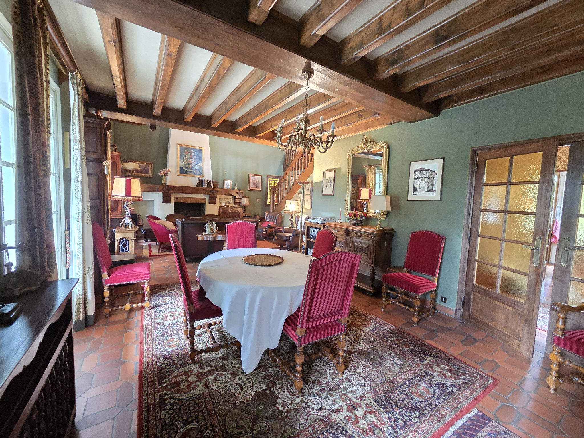 Elle comprend au rez-de-chaussée : hall d'entrée avec vestiaire, cuisine donnant accès au jardin. Une très belle pièce de réception d'environ 50 m2 ouvrant sur une grande terrasse vous séduira par son charme : poutres apparentes, plafond cathédrale, cheminée, vitraux... Dégagement avec une chambre de 14 m2, salle de bains, WC.