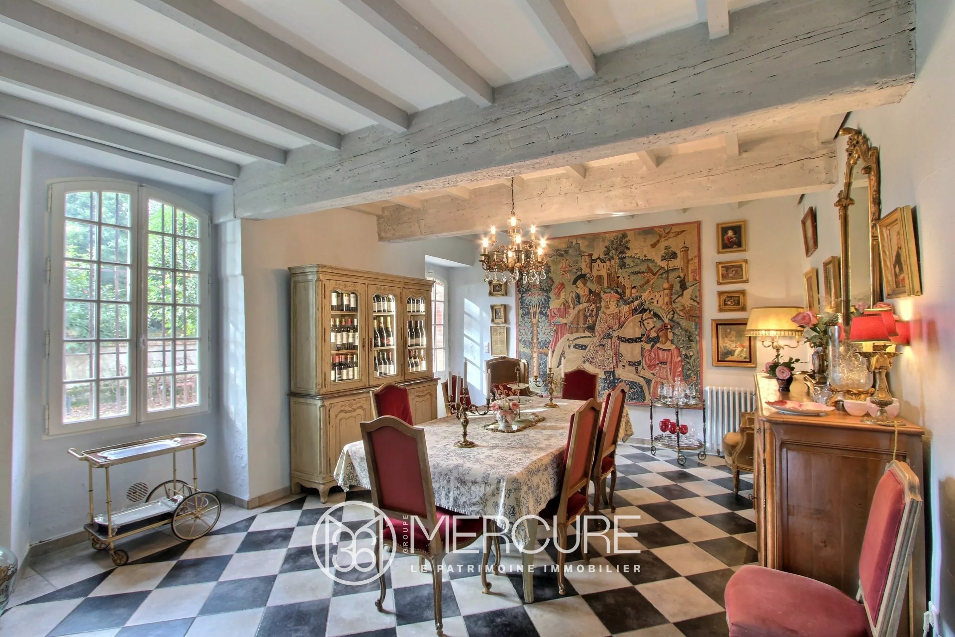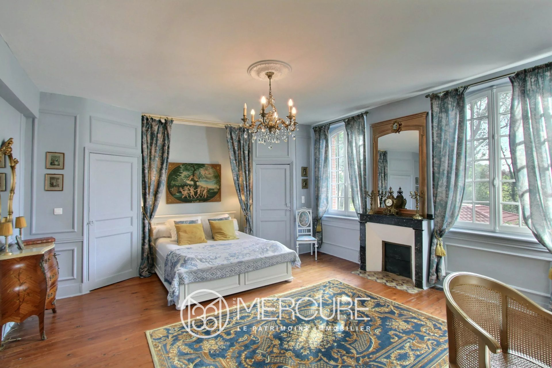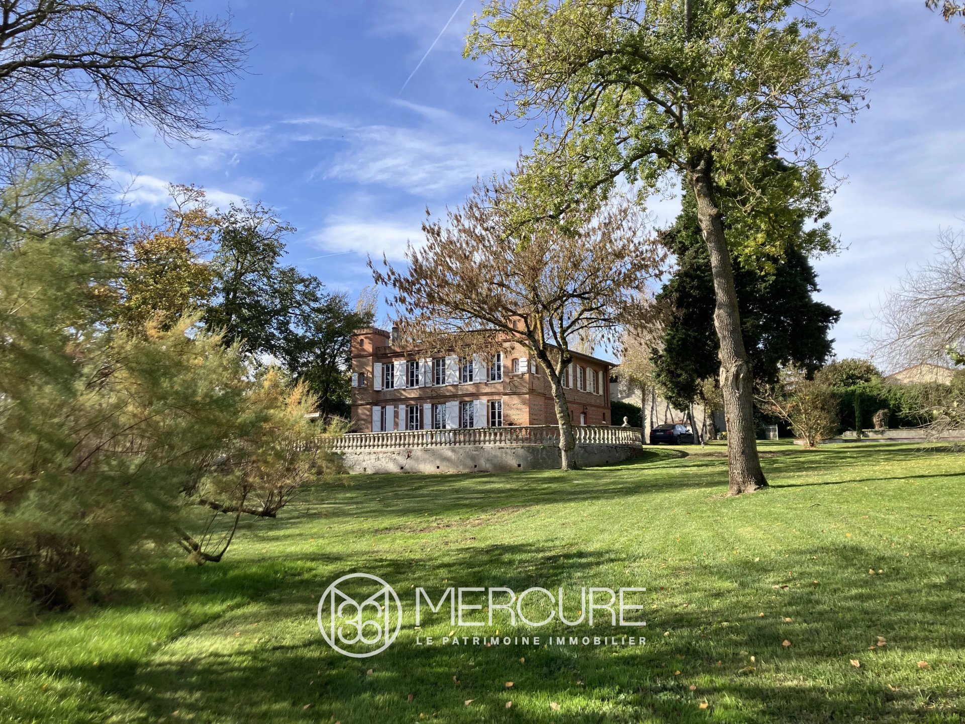 Un parc élégant avec des arbres multi-centenaires, une piscine chauffée avec de la mosaïque et un étang sont également présents.
