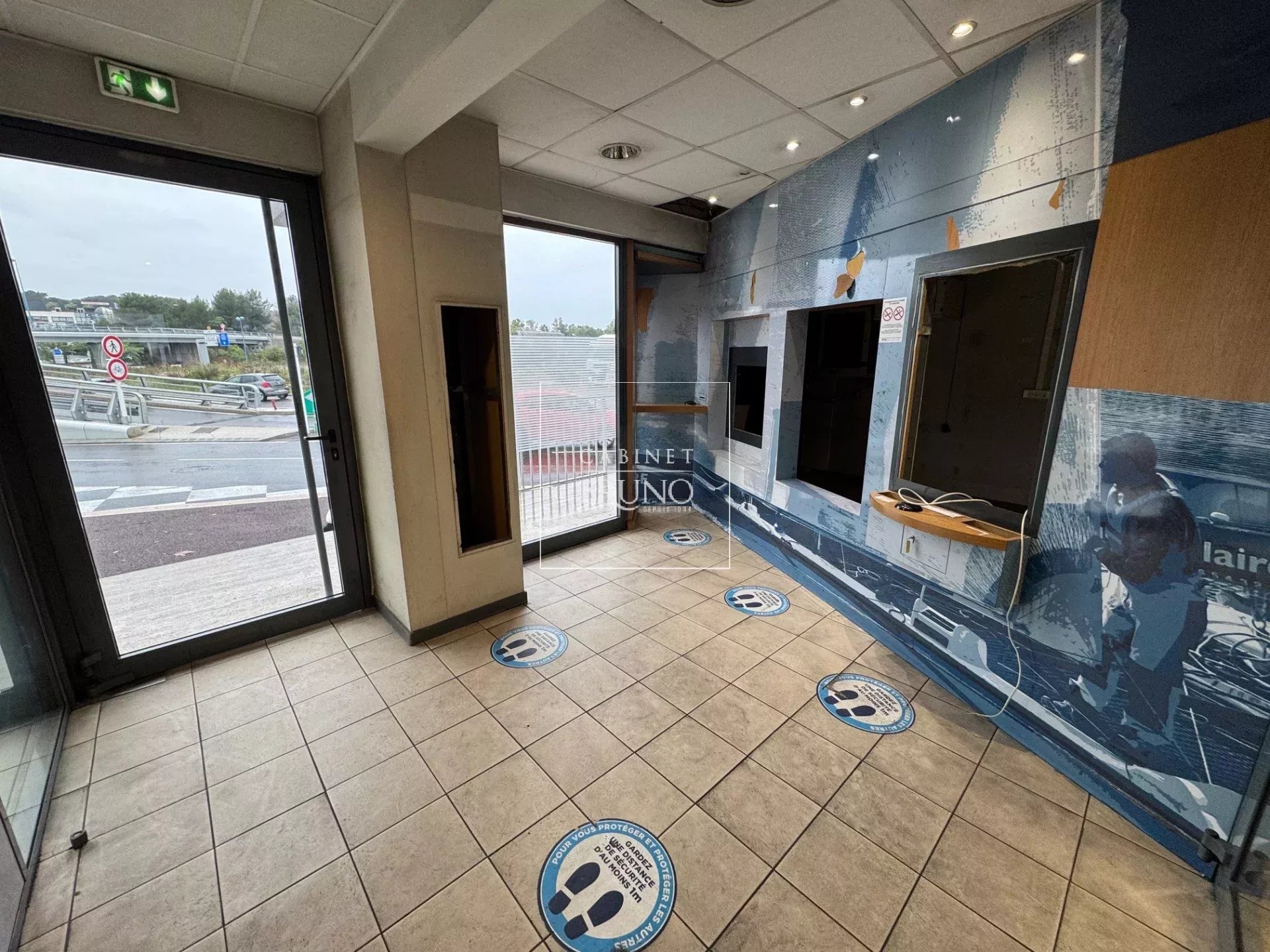 Visibilité exceptionnelle pour ce local sur deux niveaux en pignon d'immeuble sur le carrefour de super Antibes - Antipolis sortie d'Autoroute. Visible depuis l'autoroute et toutes les voies de circulation à grand passage du secteur. Grandes vitrines sur un linéaire de 15 mètres - 102 M2 en rez-de-chaussée + étage de 85 M2 accessible par un escalier intérieur + accès extérieur. 4 parkings privés. Bail commercial neuf. Nombreuses activités autorisées. Loyer 75 000 €/an hors charges et taxes.