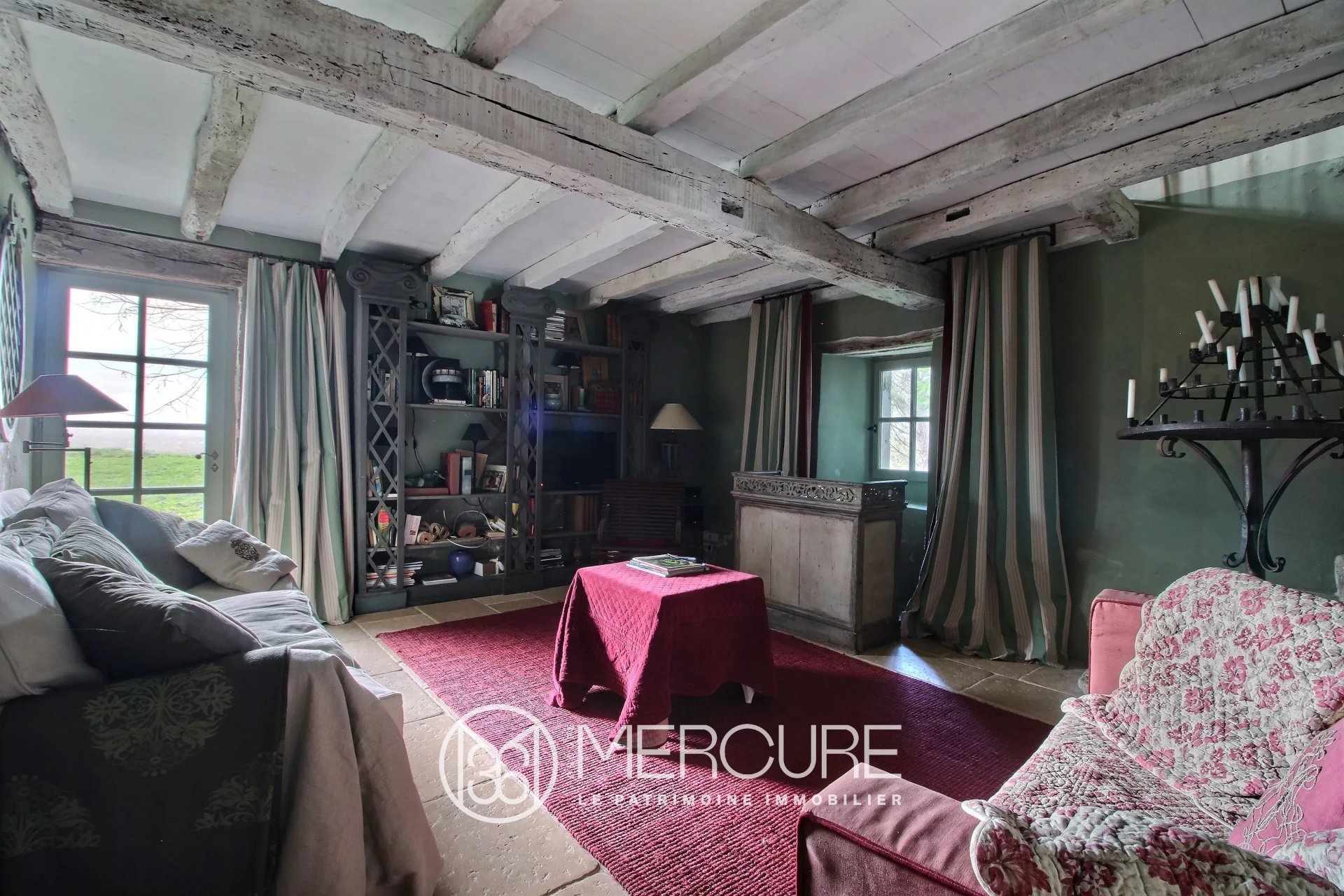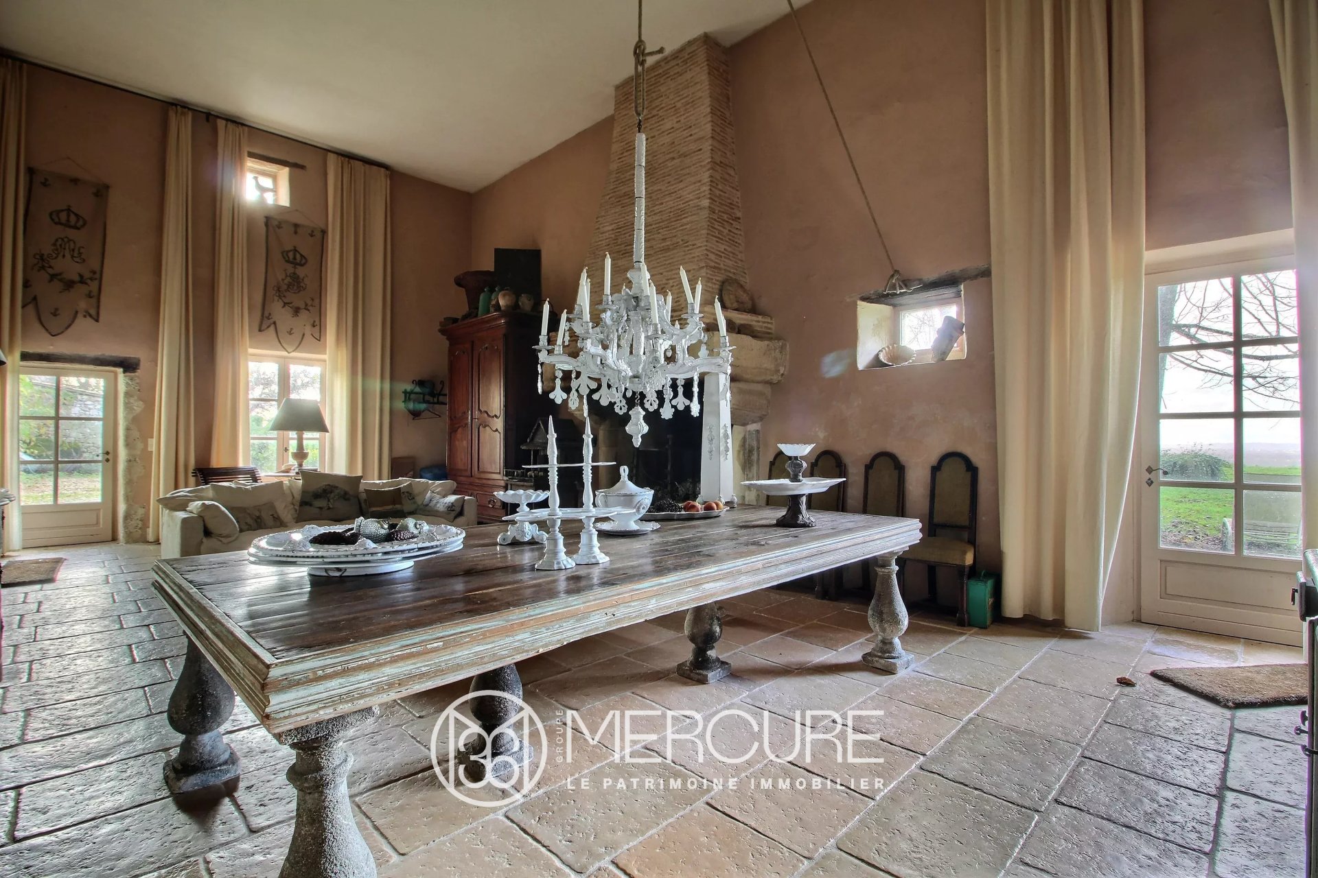 Au rez-de-chaussée, un salon/ salle à manger de 53 m², une belle cheminée en pierre, un deuxième salon/bureau/bibliothèque de 23 m² et une cuisine équipée. Chauffage au sol.