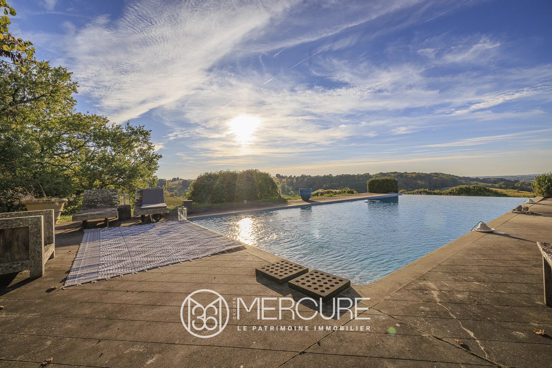 Piscine à débordement avec vue plongeante sur la vallée.
