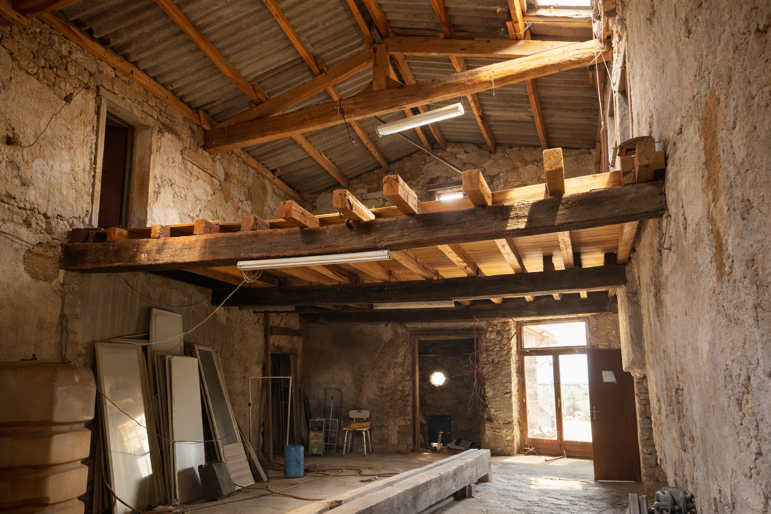 Au premier étage :Un énorme potentiel de 63 m2 à aménager avec charpente apparente