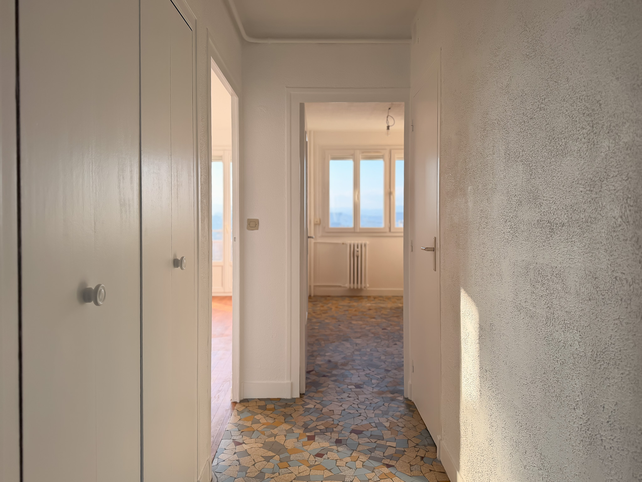 Dans copropriété sécurisée, entre les facultés et le Tram, en étage élevé avec ascenseur, appartement traversant entièrement repeint bénéficiant d'une belle vue dégagée, séjour double très lumineux donnant sur balcon, parquets chêne, deux chambres chacune avec placards, fenêtres double vitrage, volets roulants électriques, cave, parking collectif fermé. Appartement très agréable à vivre, à voir.
