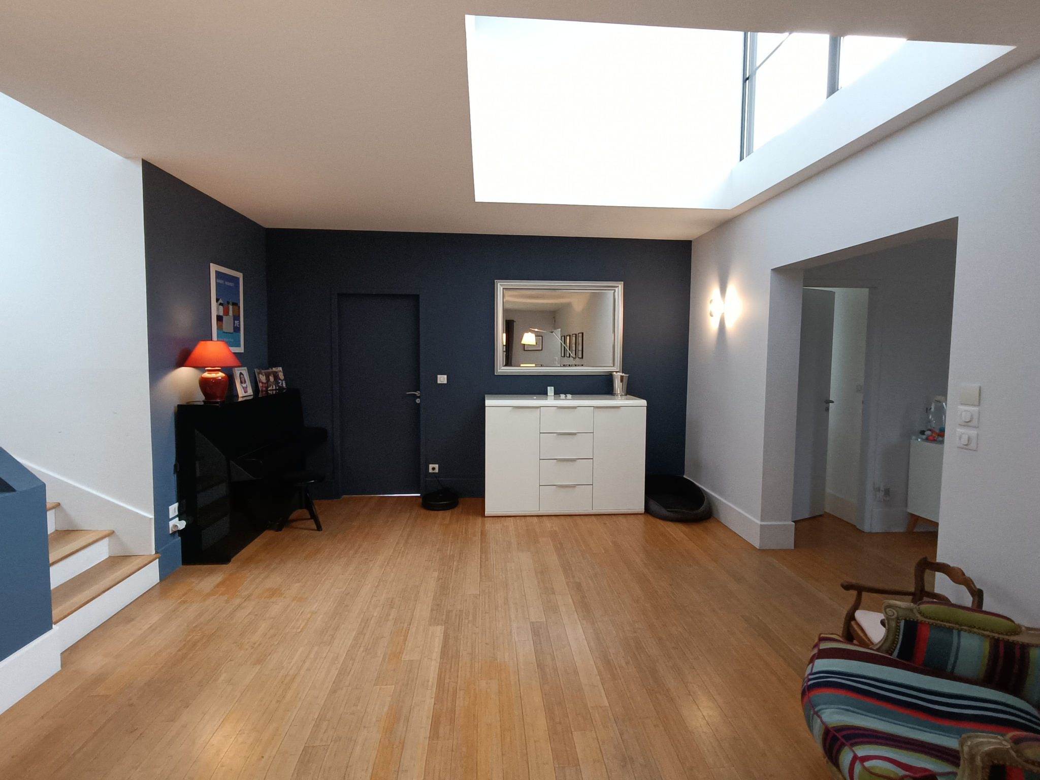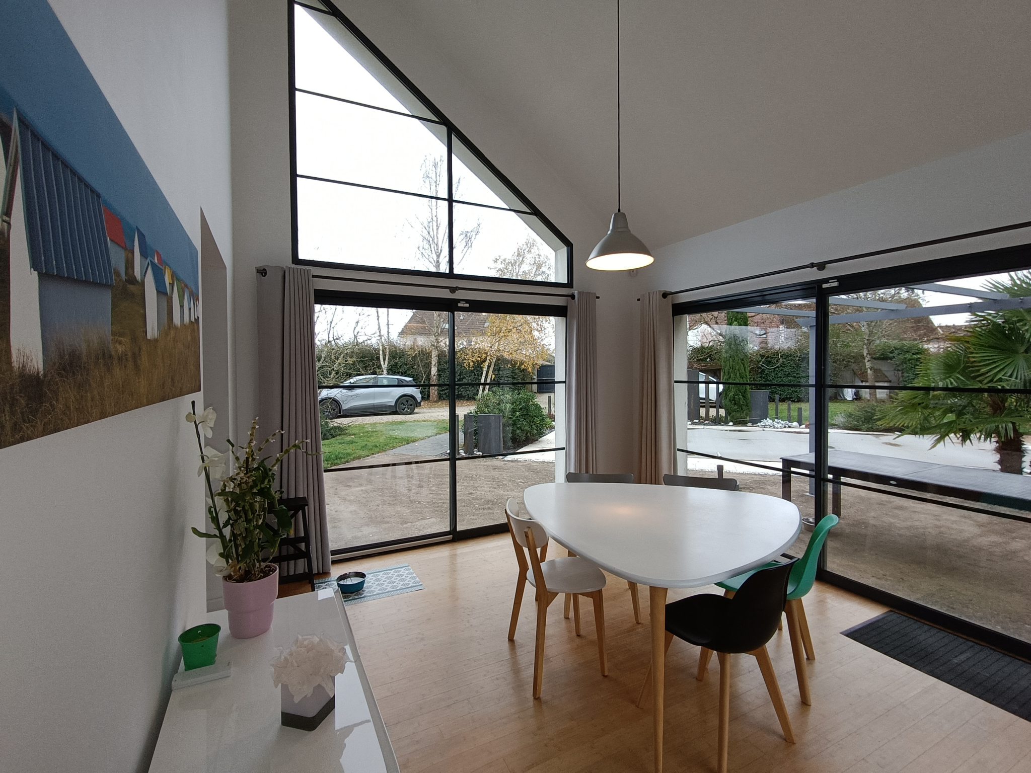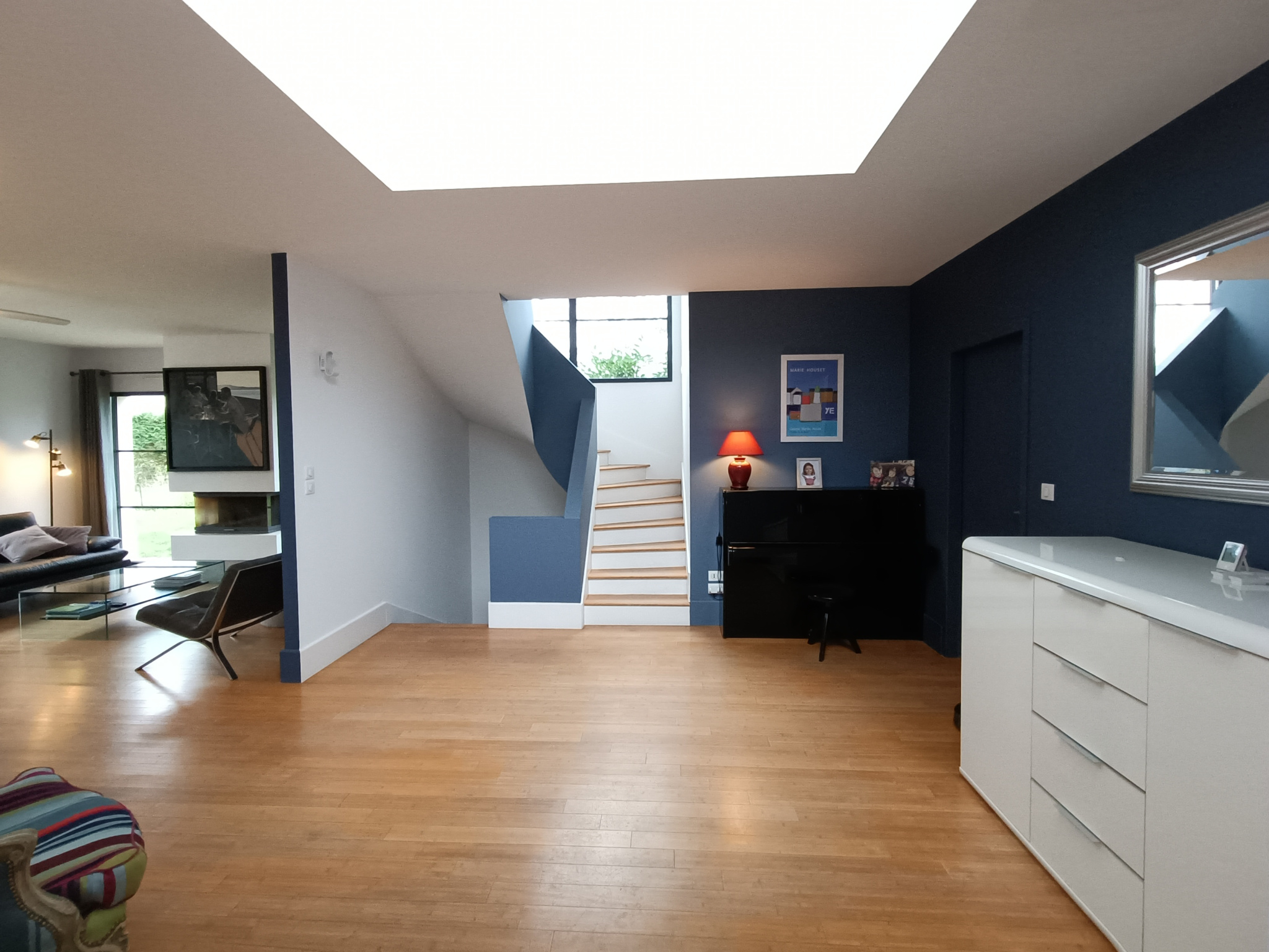 Dès l'entrée, vous découvrirez les volumes généreux et la luminosité transportée par ses grandes ouvertures vers l'extérieur.