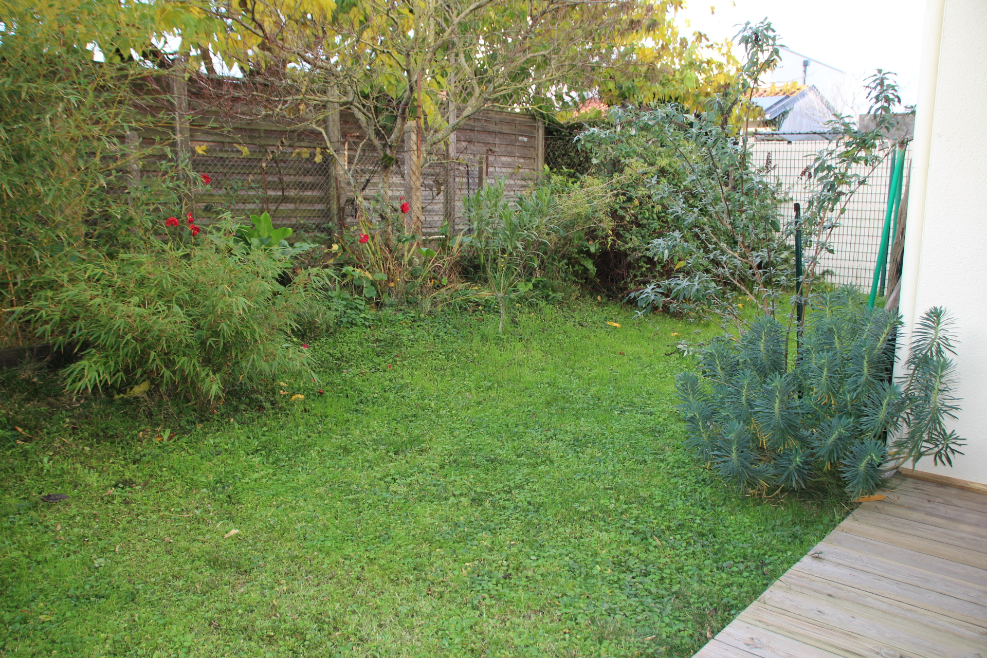 Terrasse couverte orientée au Sud-Ouest et jardinet paysagé privatif.