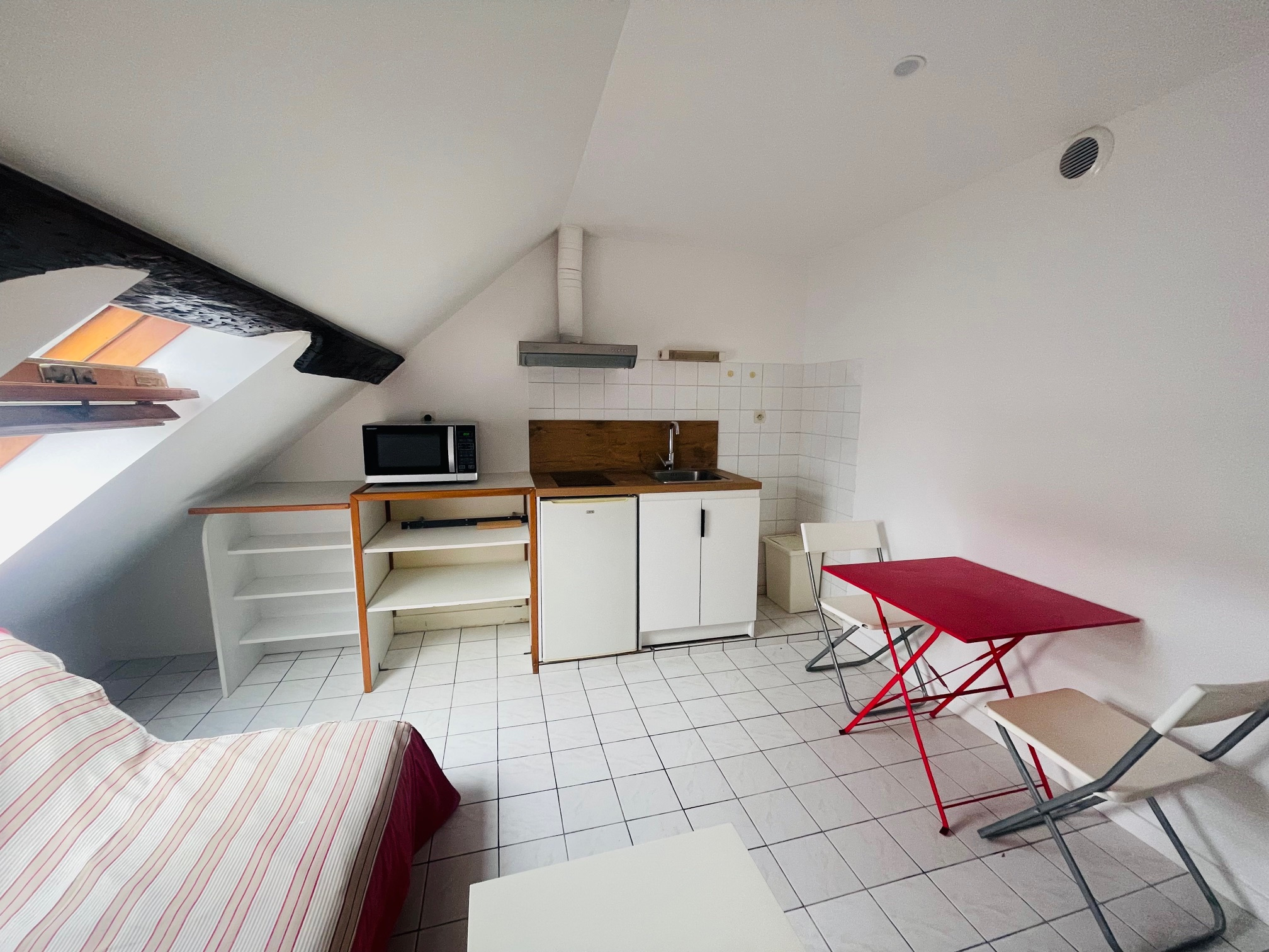A VENDRE à NANTES (44000), quartier de la Cathédrale, proche de la Gare et du Lycée Clémenceau, place de l'Oratoire, dans un immeuble ancien de caractère, un appartement T2 mansardé (26.5m2 loi Carrez - 40m2 au sol) au 4ème étage sans ascenseur.
