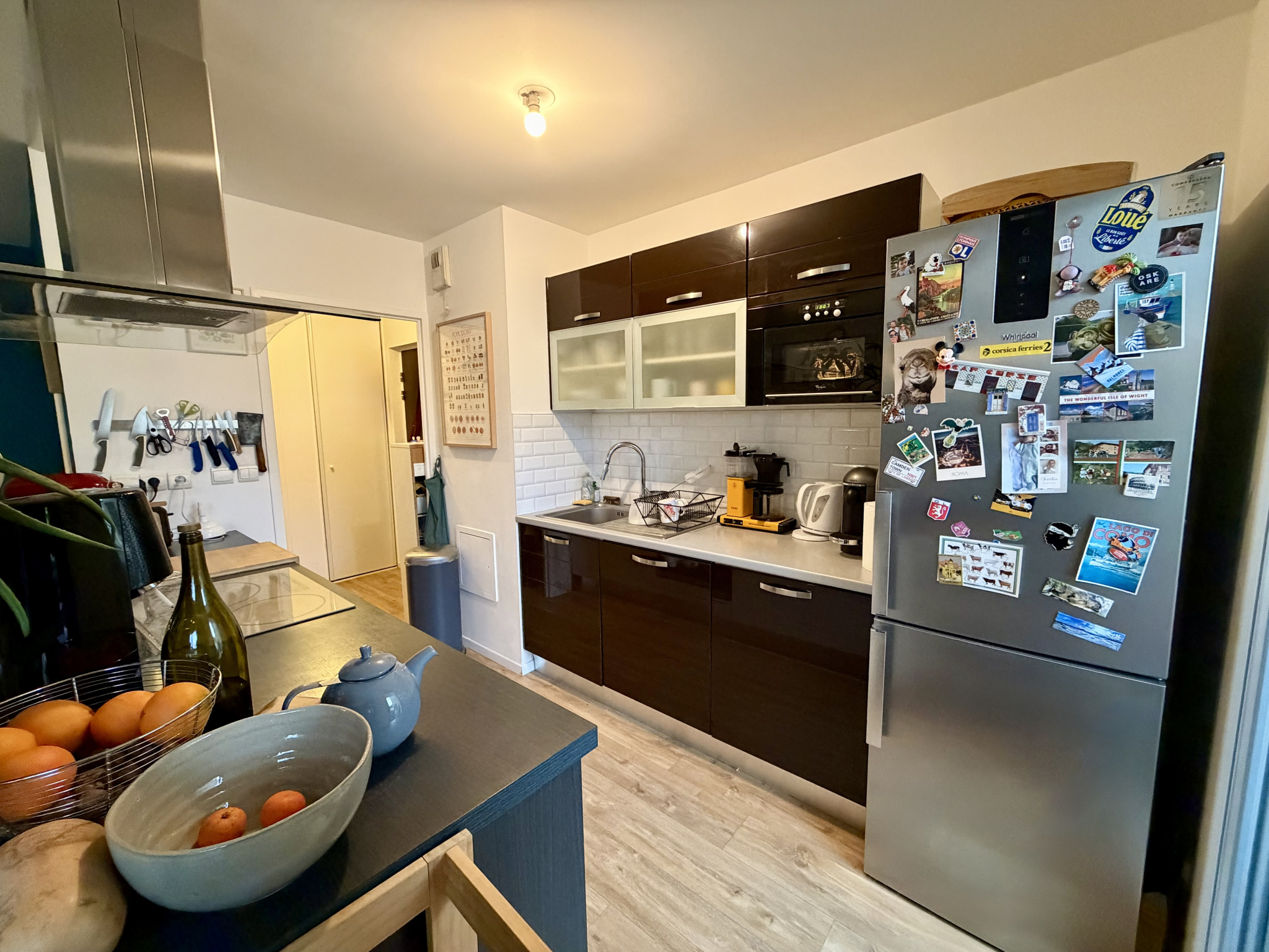 Cuisine entièrement équipée : four, plaques de cuisson, hotte, micro-ondes, lave-vaisselle.