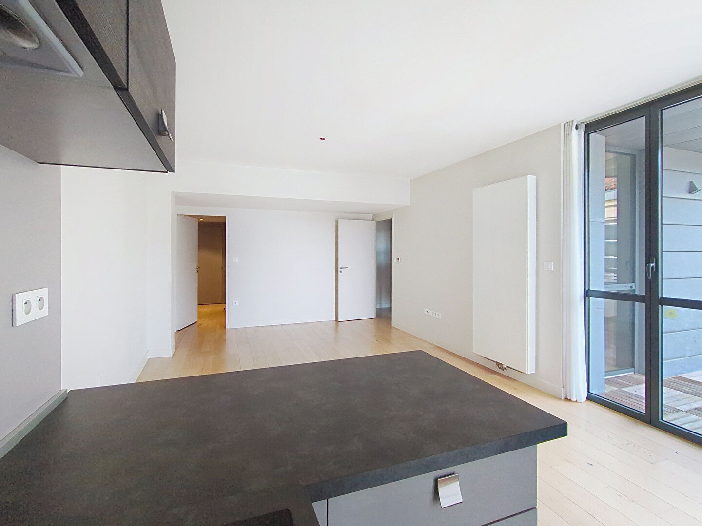 Il se compose d'un séjour avec une cuisine ouverte aménagée et équipée, deux chambres, un petit bureau, une salle d'eau, un WC indépendant et une terrasse de 16 m² exposée Sud est.