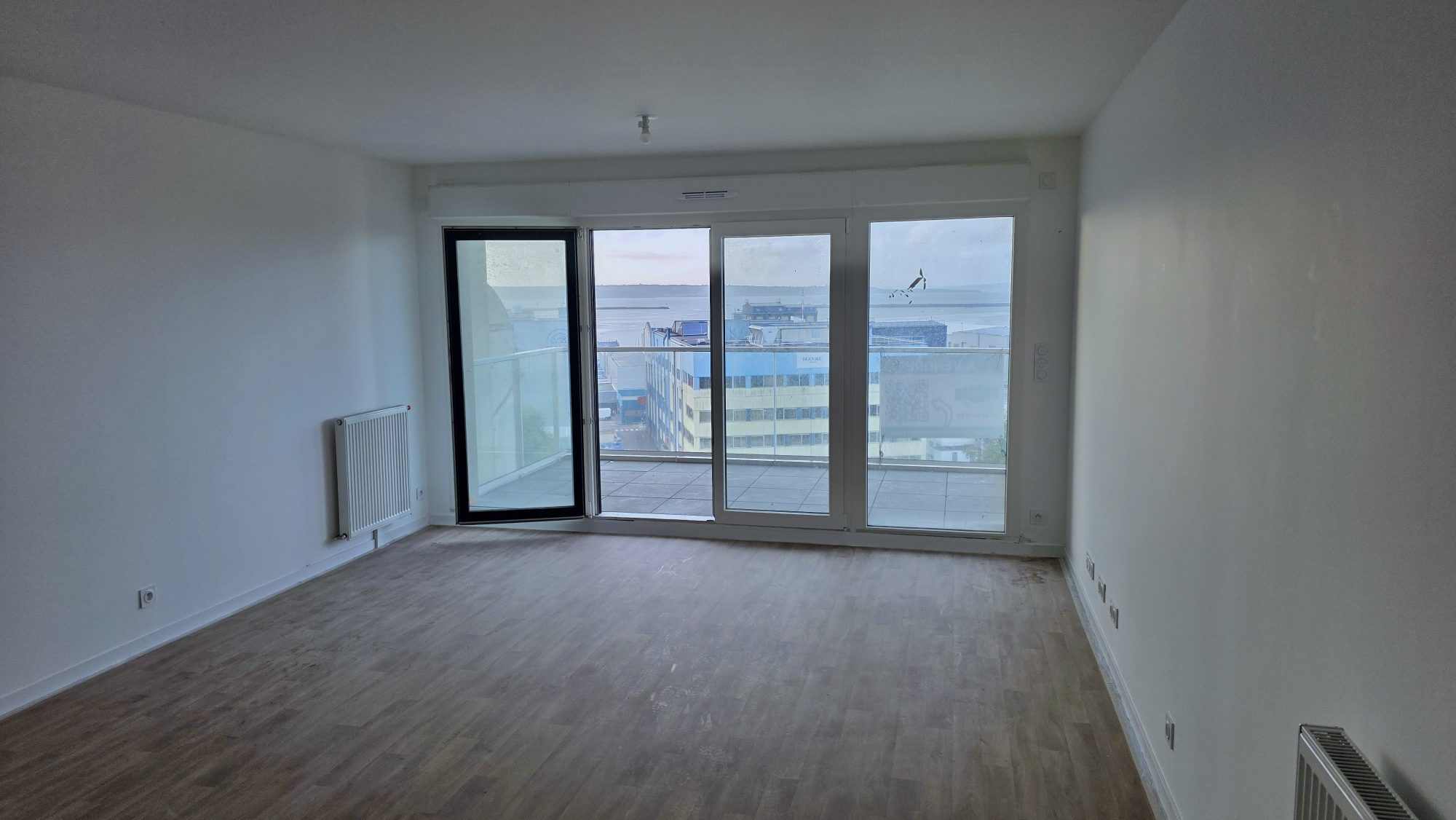 Spacieux T3 avec baie vitrée de presque 4m de large en front de rade, 2è étage. expo sud.
