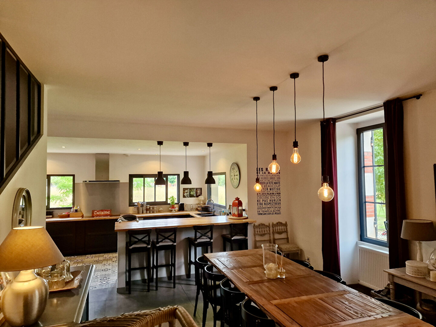 HABITATION : Maison de maître d'environ 262 m² rénovée il y a 5 ans, comprenant un espace de vie d'environ 70 m² avec cuisine ouverte, salon et salle à manger, sept chambres (2 au rez-de-chaussé dont une chambre de maître; il y a également une deuxième chambre de maître à l'étage), une salle de bain, un WC, et un cellier. L'ensemble offre un confort moderne et lumineux, avec des matériaux de qualité.