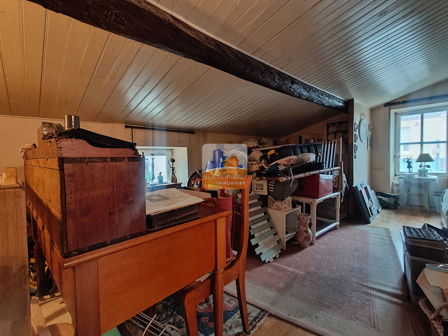 - une grande chambre mansardée avec un espace bureau